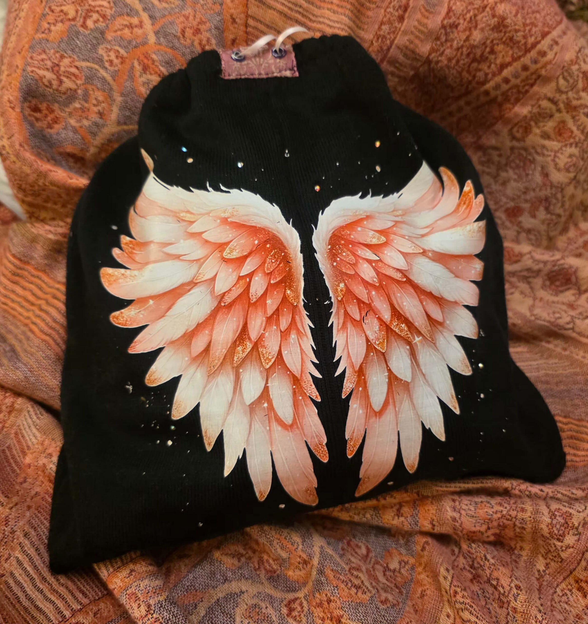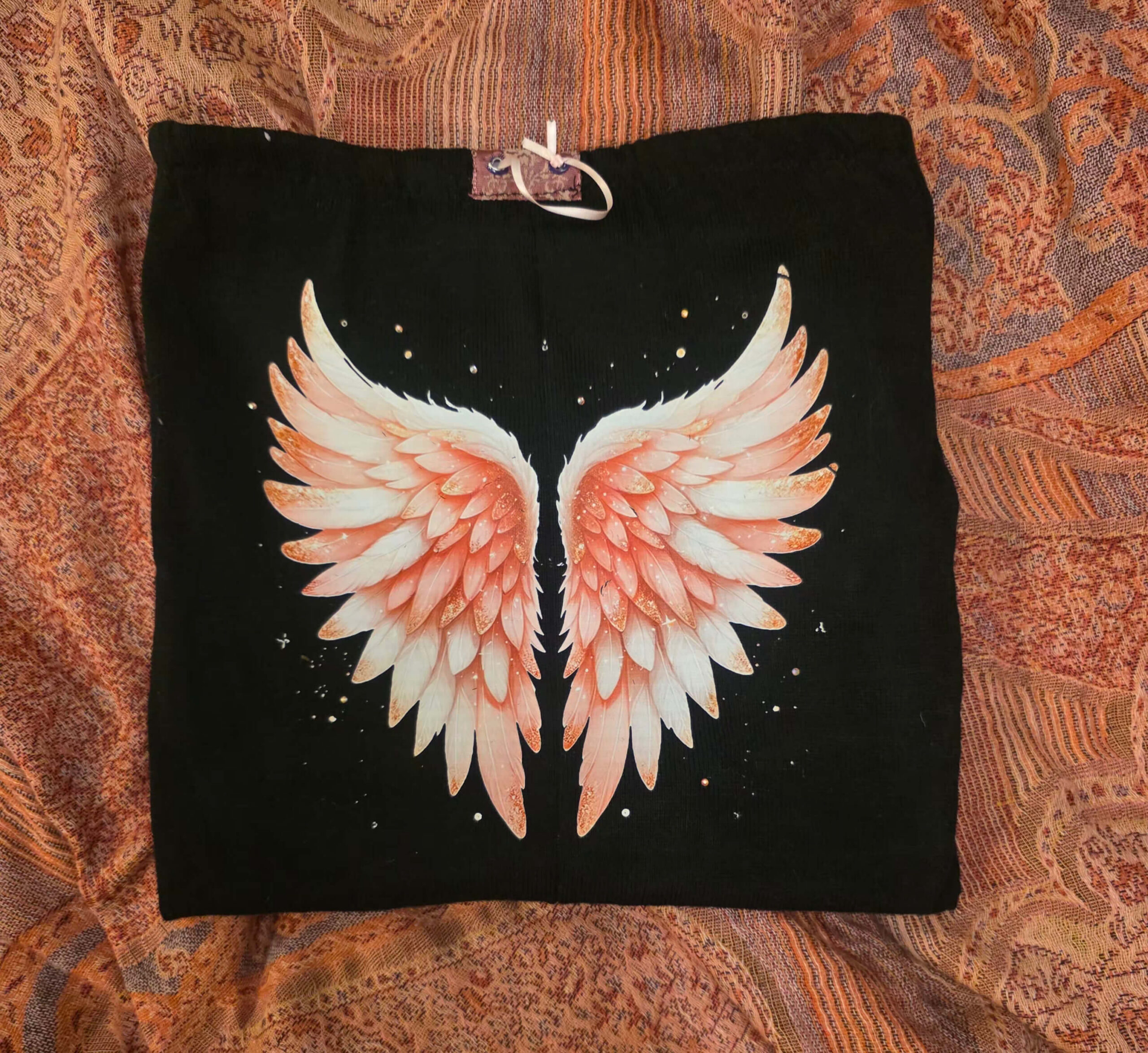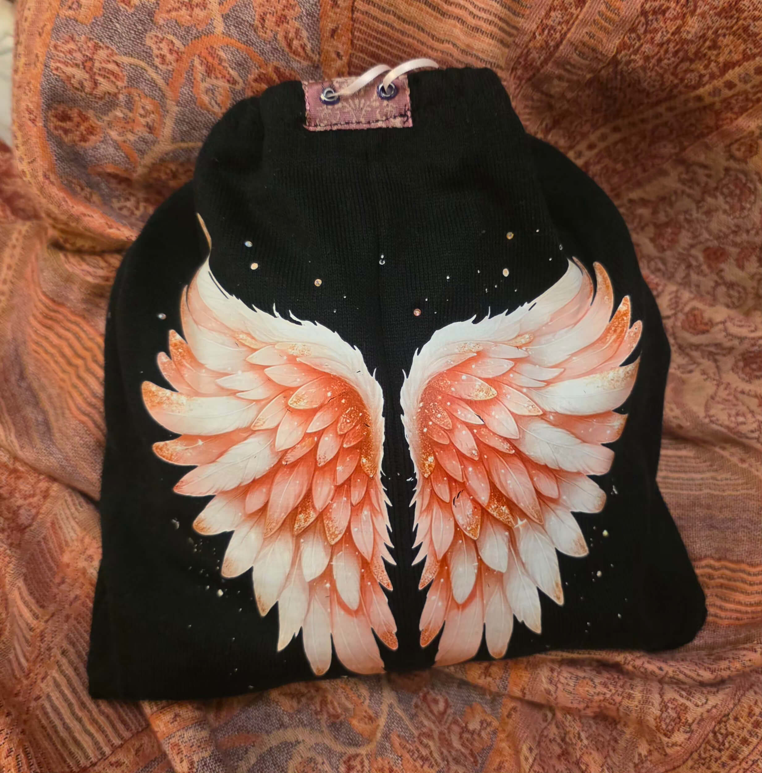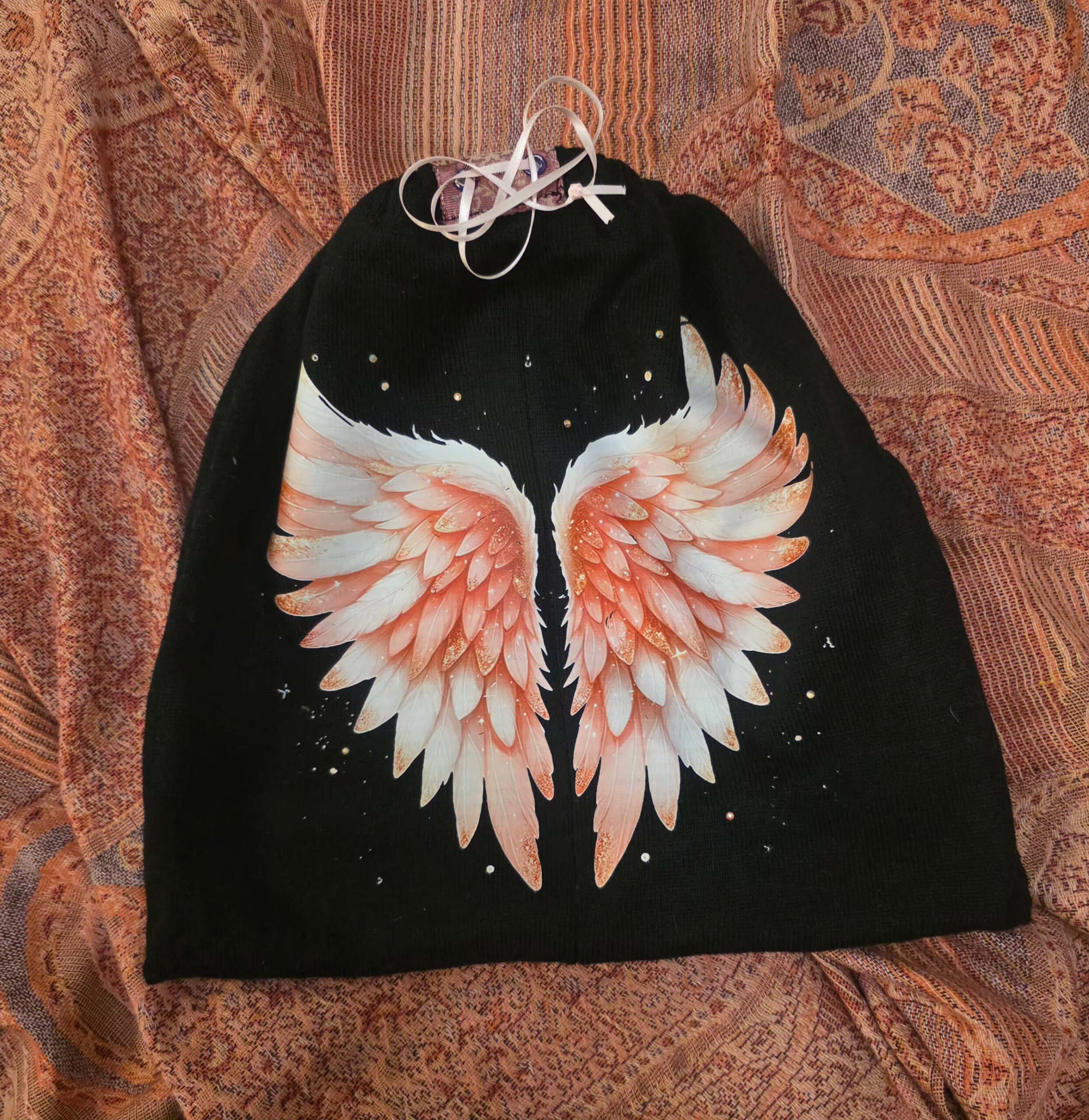 soft textile lining, knitted, printed pattern, beads, crystals, polyester ribbon