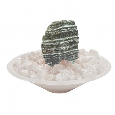 silver jasper , pump silver jasper 15 x 11 x 9 cm, ca 3 kg rock crystal chips