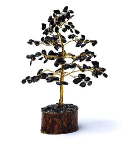 Gemstone tree with rose quartz leaves, to decorate a room with the healing power of gemstones.