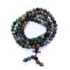 Mala originally is a hinduistic and buddhist tool for prayer and meditation. It is used to count mantras during meditation. A mantra is a collection of words, often from Sanskrit, which is repeated several – traditionally 108 – times. While repeating, you focus on the meaning and vibration of the words, possibly combined with the accompanying visualisation. By training in a meditation practice like this, your thoughts come to rest and your body relaxes. Nowadays, a mala is also worn as a fashion accessory. Malas have 108 beads because this number has great scientific significance in the Hindu and buddhist traditions. The circumference of the sun times 108 is the distance between the sun and the Earth and the same is true for the moon and Earth. Also, there are 108 nadis or energy channels in the body. There are 54 sanskrit letters- both masculine and feminine, totaling 108. There are 108 Puranas and 108 Upanishads. The list goes on and on!! So that same sacred number is used in malas.