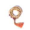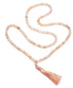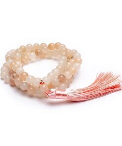 Mala originally is a hinduistic and buddhist tool for prayer and meditation. It is used to count mantras during meditation. A mantra is a collection of words, often from Sanskrit, which is repeated several – traditionally 108 – times. While repeating, you focus on the meaning and vibration of the words, possibly combined with the accompanying visualisation. By training in a meditation practice like this, your thoughts come to rest and your body relaxes. Nowadays, a mala is also worn as a fashion accessory. Malas have 108 beads because this number has great scientific significance in the Hindu and buddhist traditions. The circumference of the sun times 108 is the distance between the sun and the Earth and the same is true for the moon and Earth. Also, there are 108 nadis or energy channels in the body. There are 54 sanskrit letters- both masculine and feminine, totaling 108. There are 108 Puranas and 108 Upanishads. The list goes on and on!! So that same sacred number is used in malas.