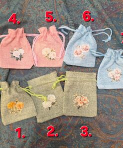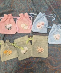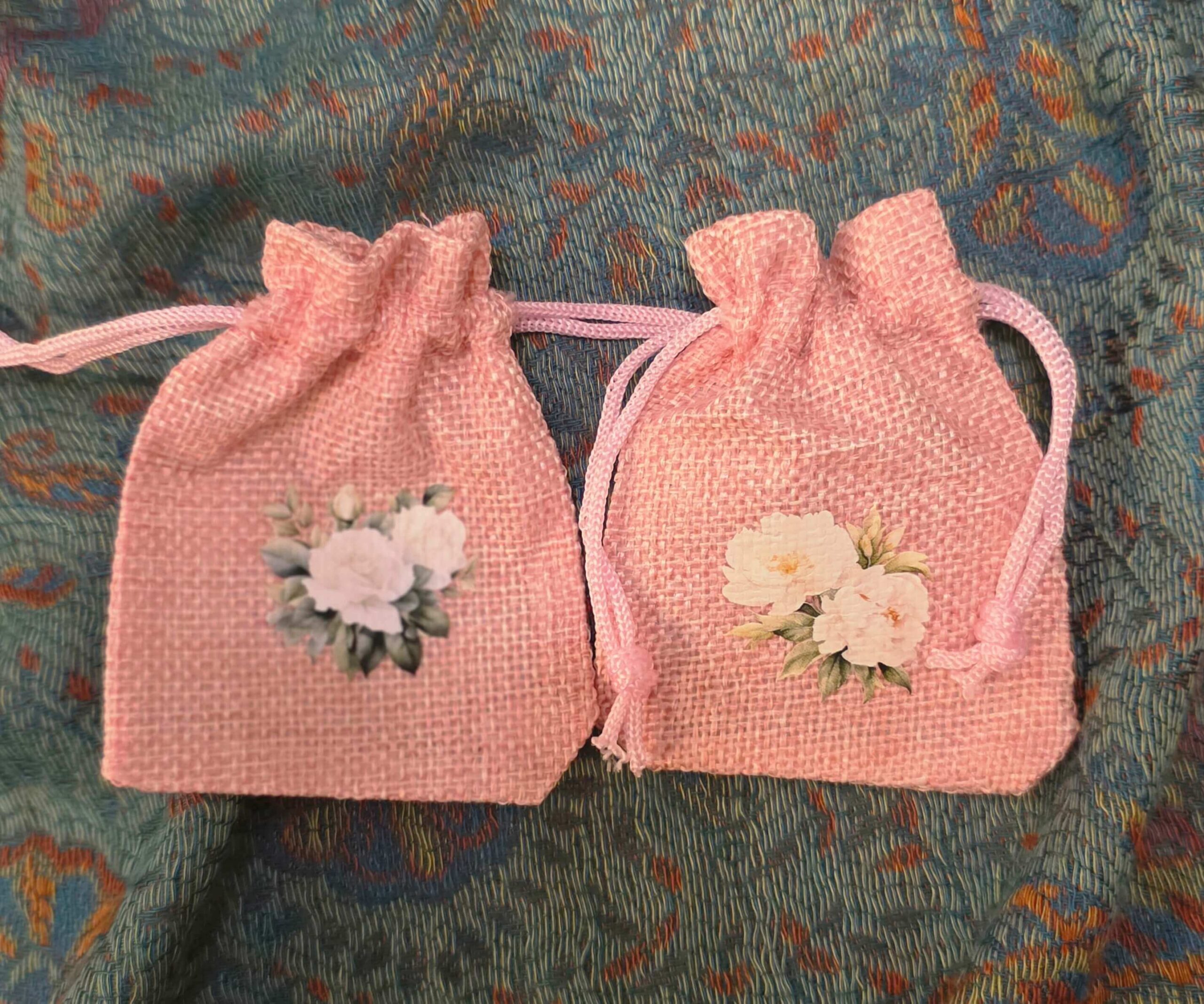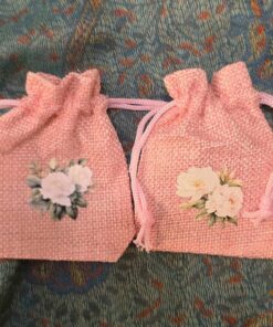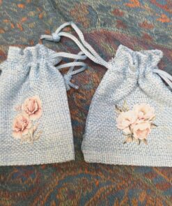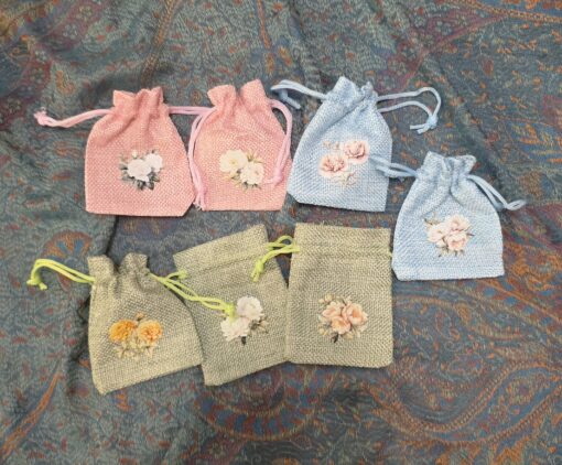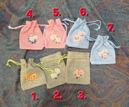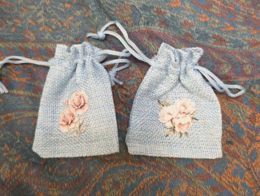 Mini jute pouch Flowers 6,5 x 8,5 cm