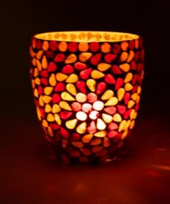 Colourful glass candle holder, suitable for t-lights and votive candles.