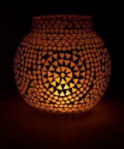 Mosaic glass candle holder, suitable for t-lights and votive candles.