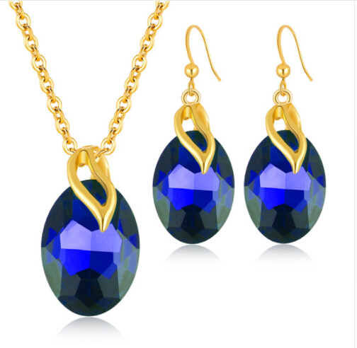 Oval crystal golden jewellery set