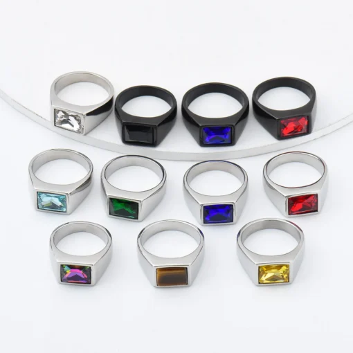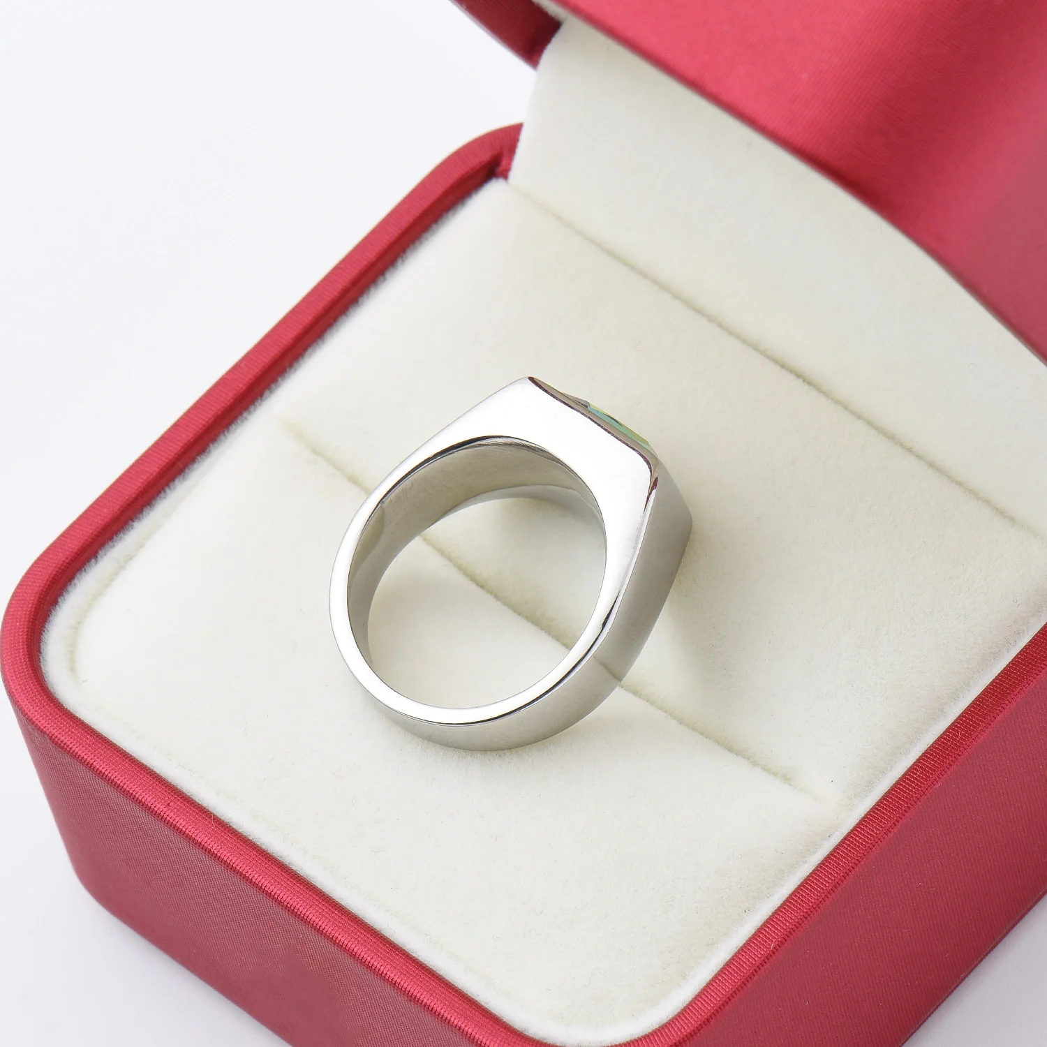 Hõbedane roostevaba teras sõrmus ruudu kiviga suurus 21