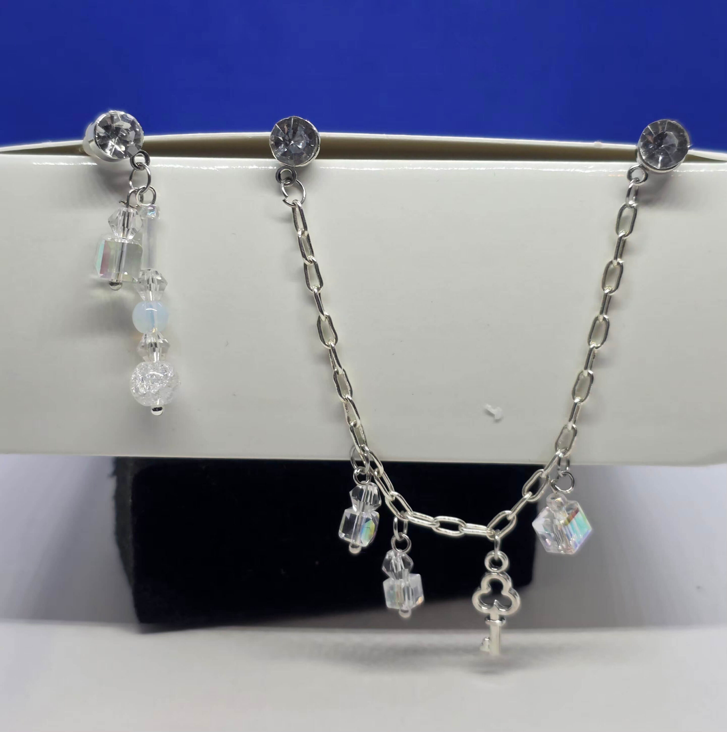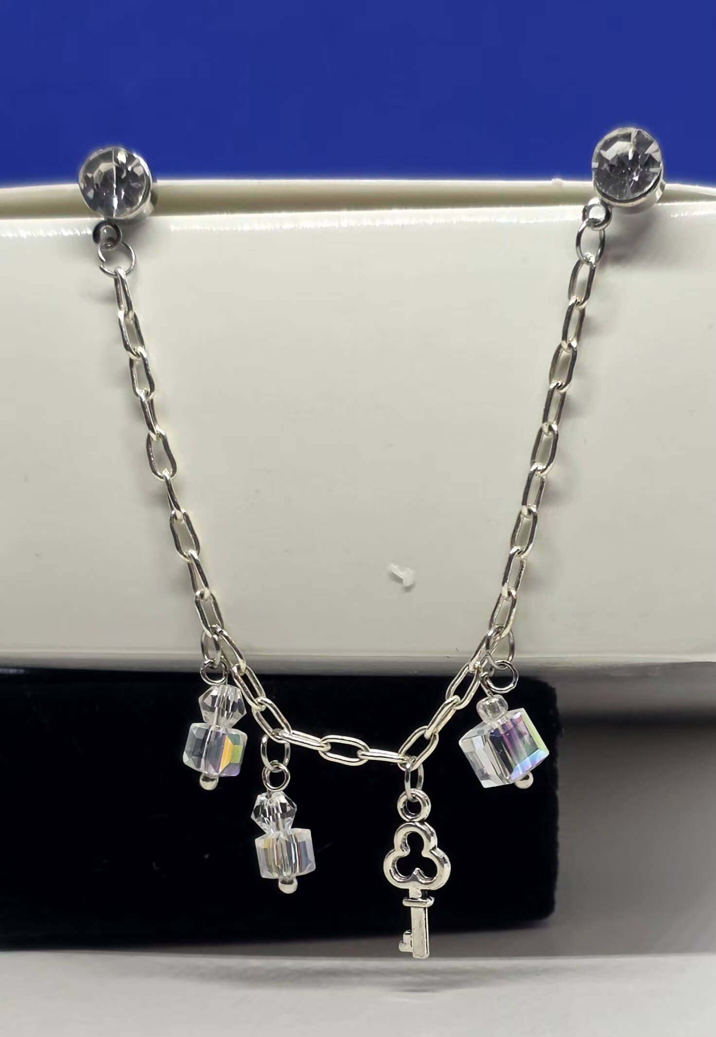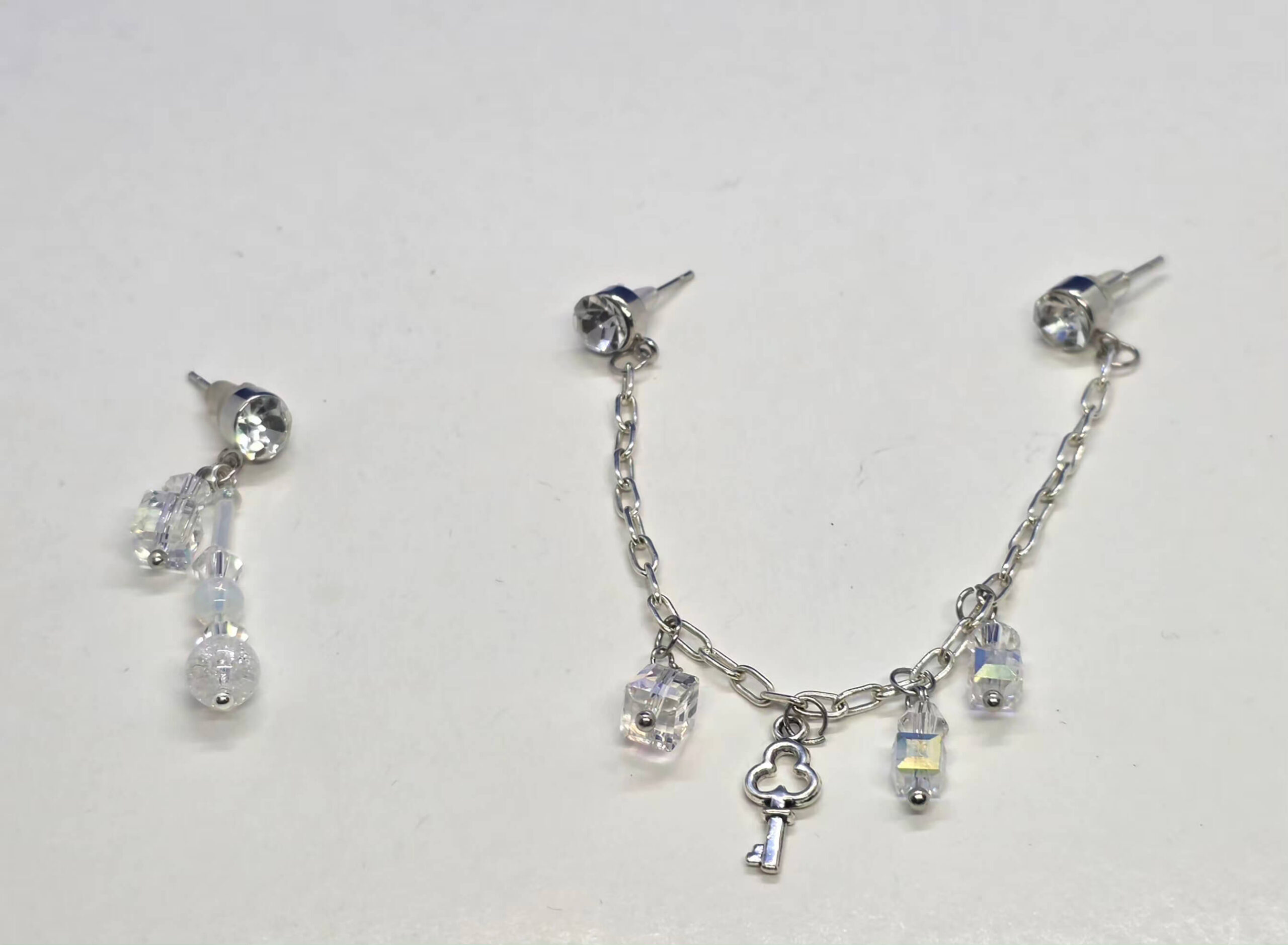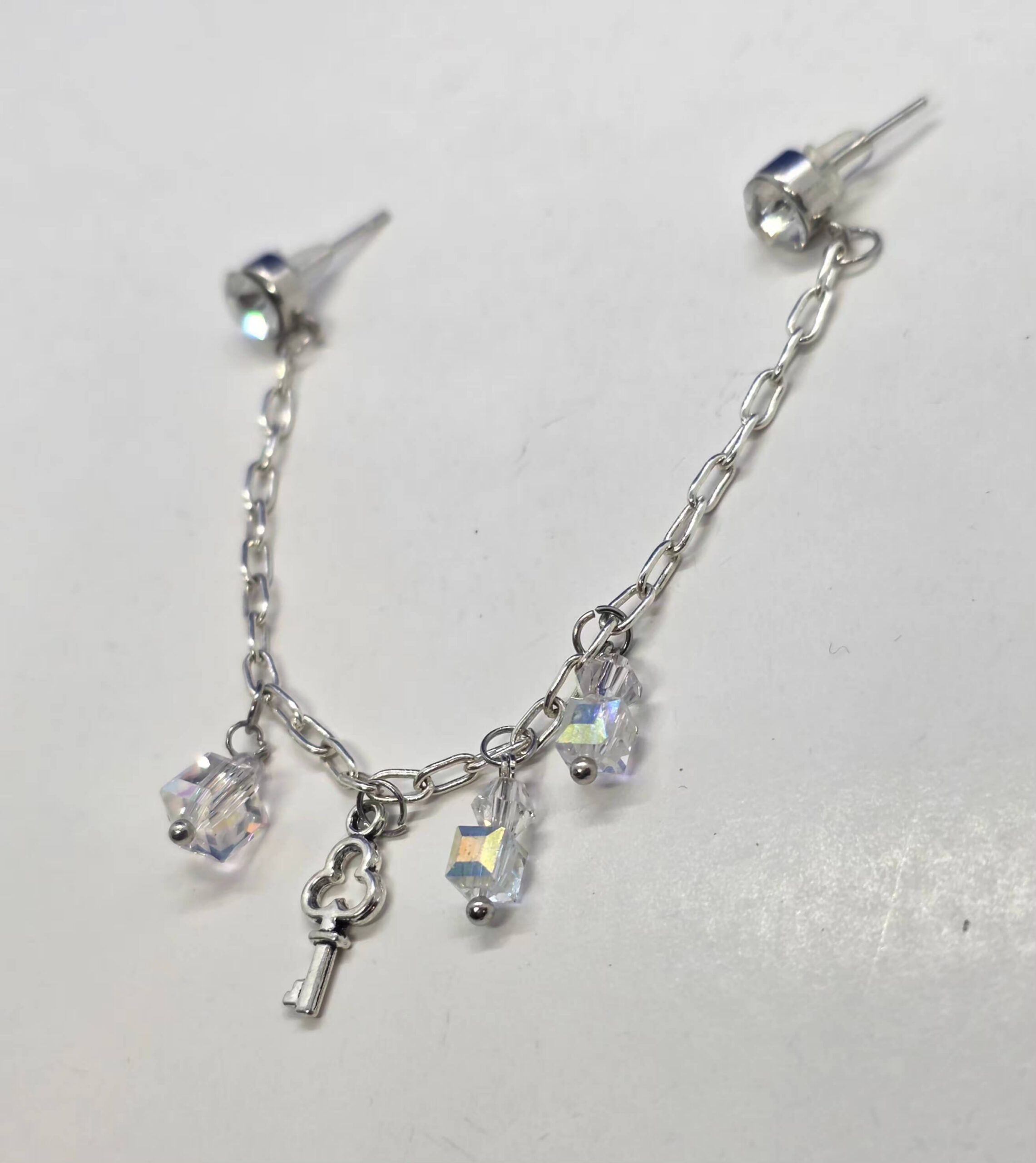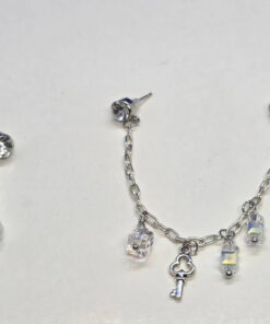Hõbedased kettidega kõrvarõngad võtme ripatsiga