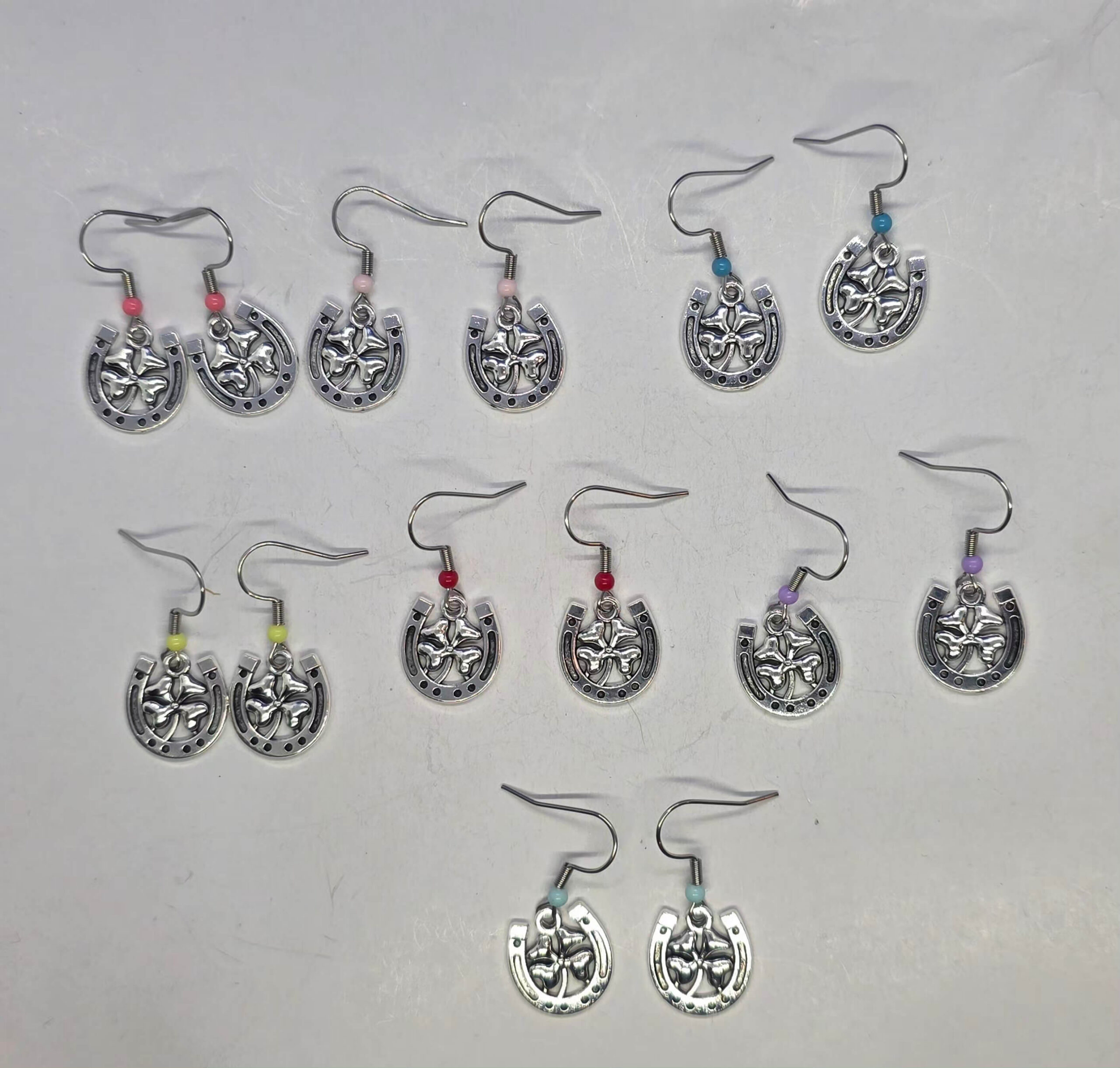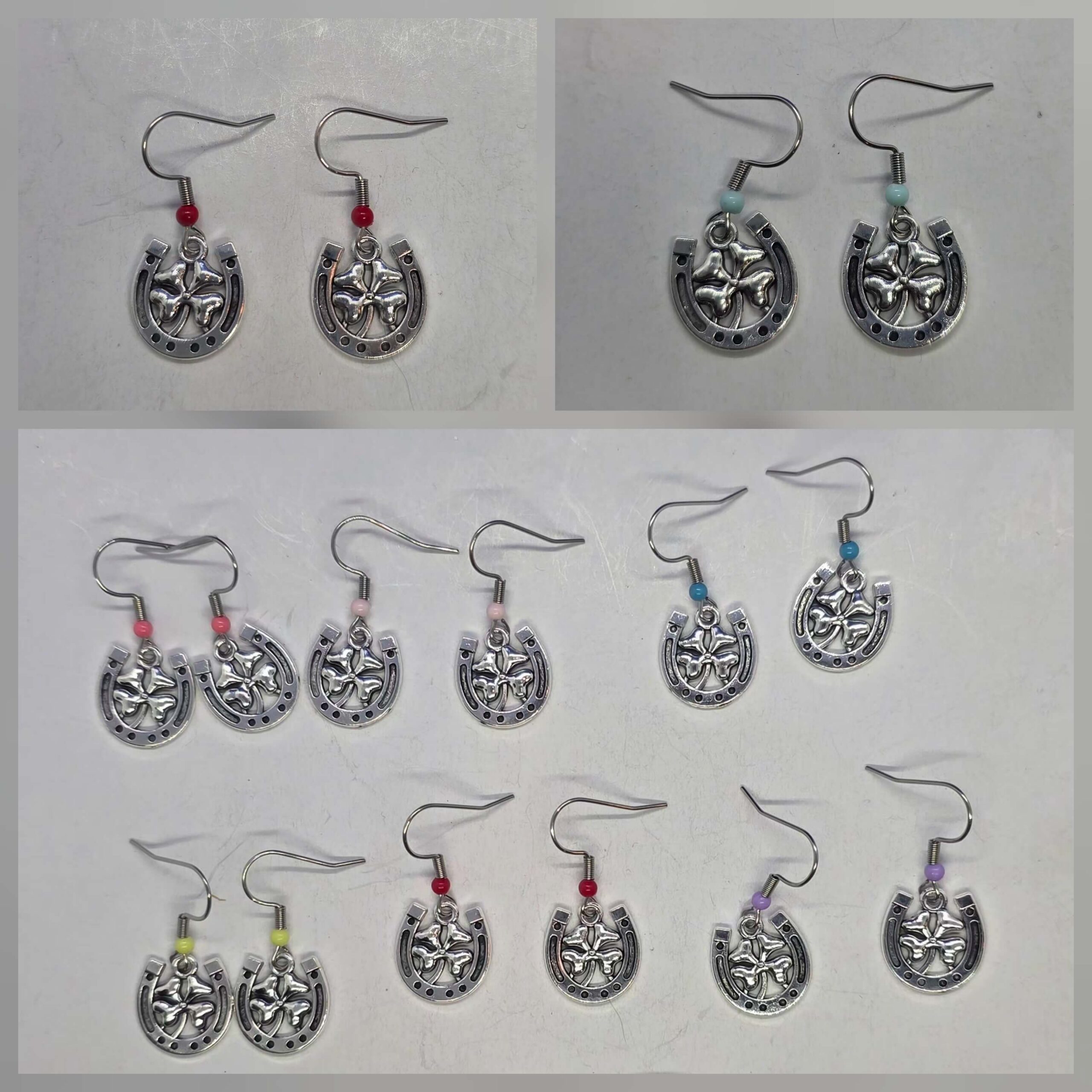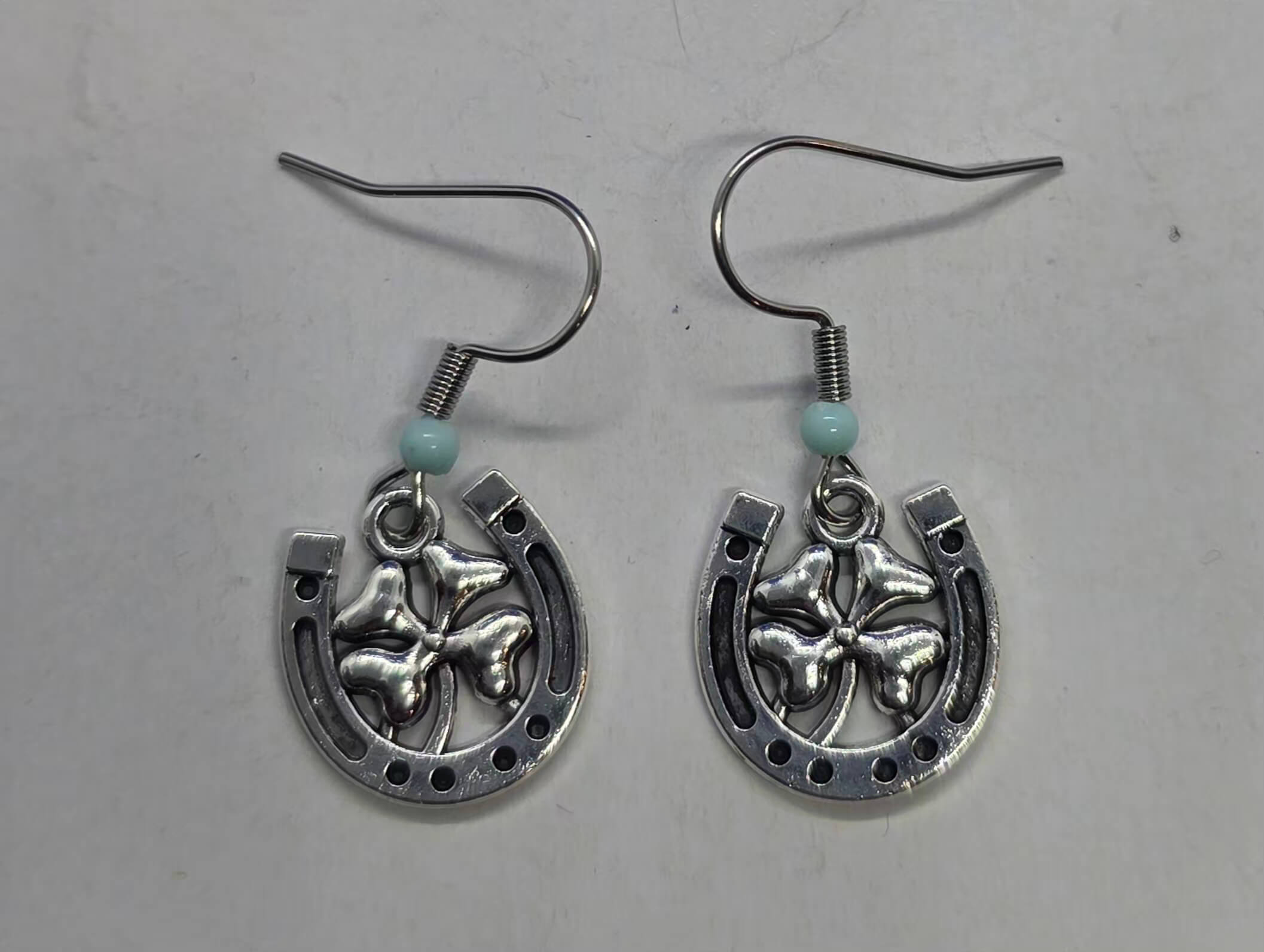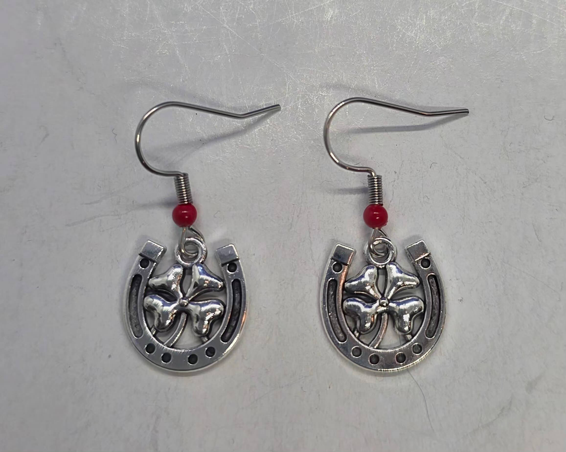Hobuseraua ja ristikuga rippuvad hõbedased kõrvarõngad