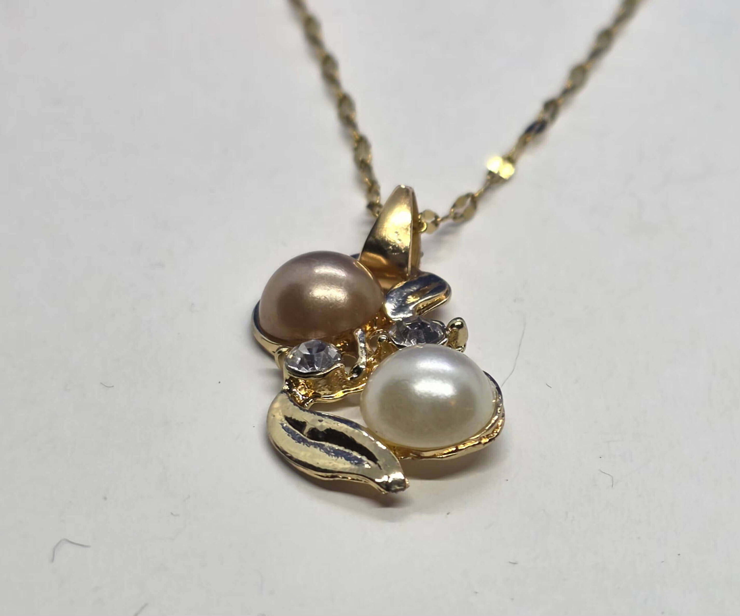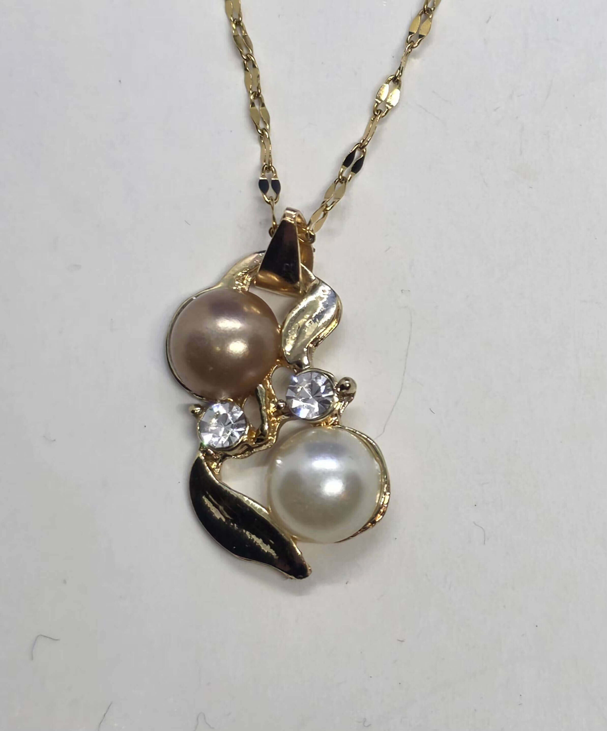 Ketiga kuldne ripats valge/beeži pärliga