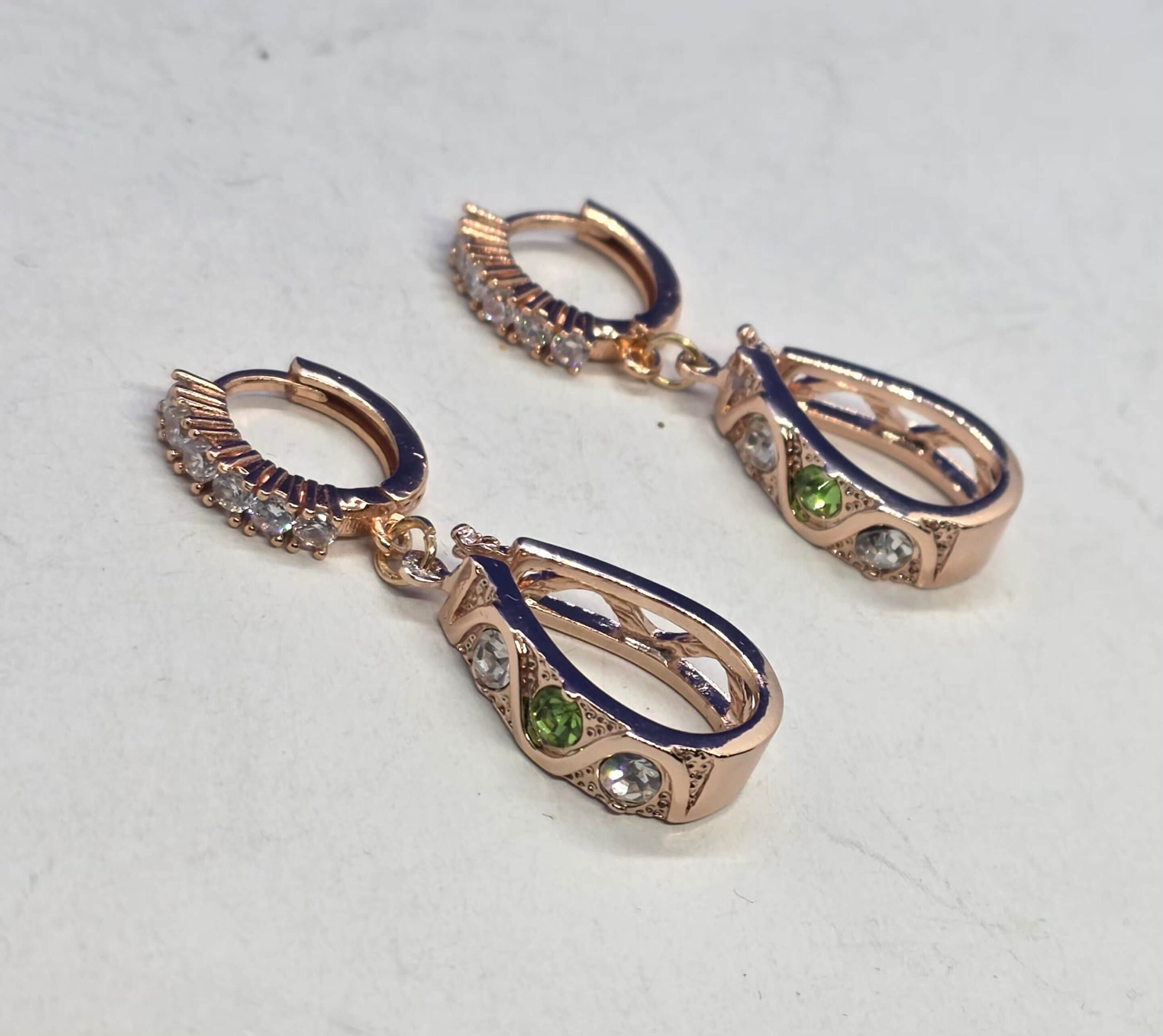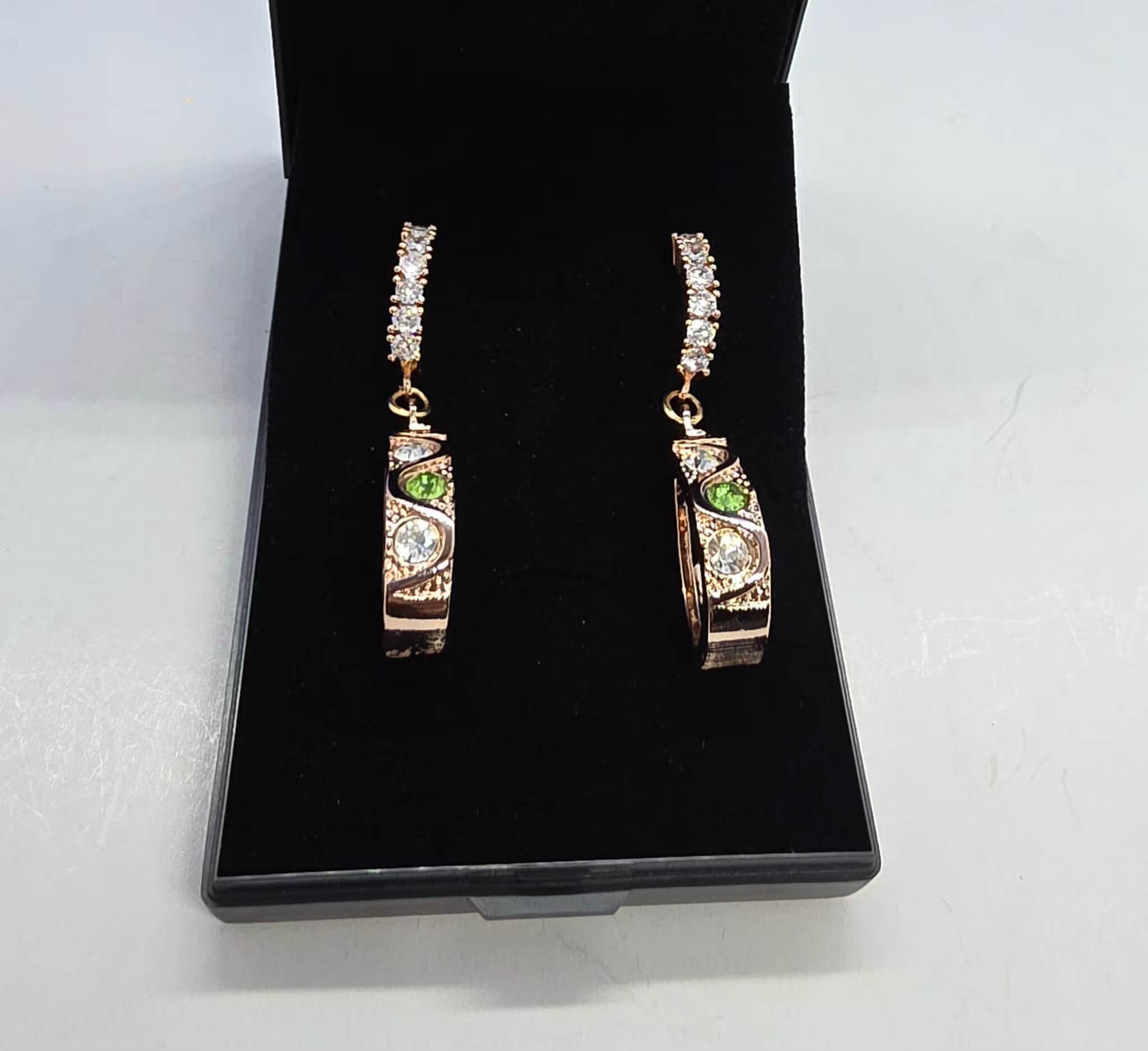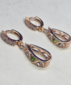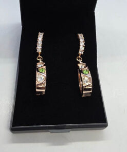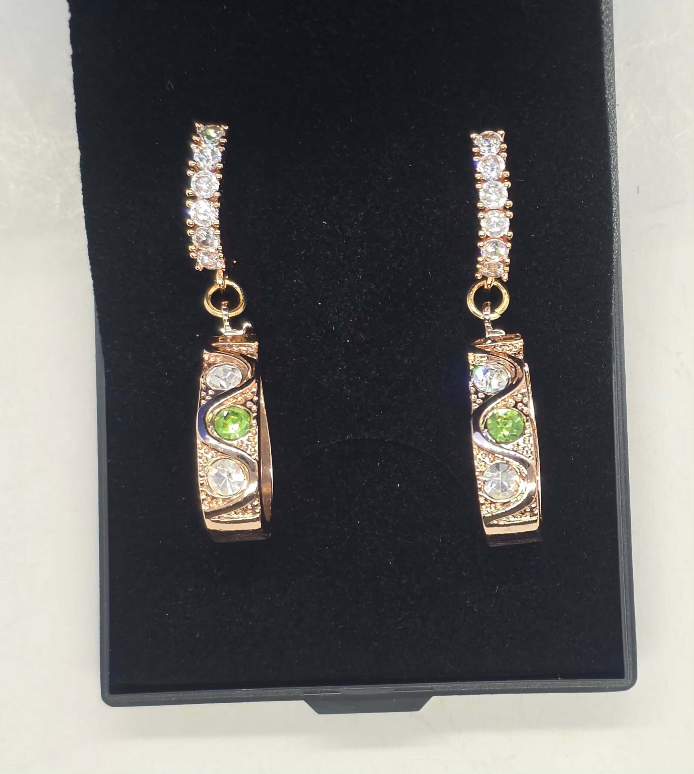Kuldsed rippuvad roheliste kristallidega kõrvarõngad