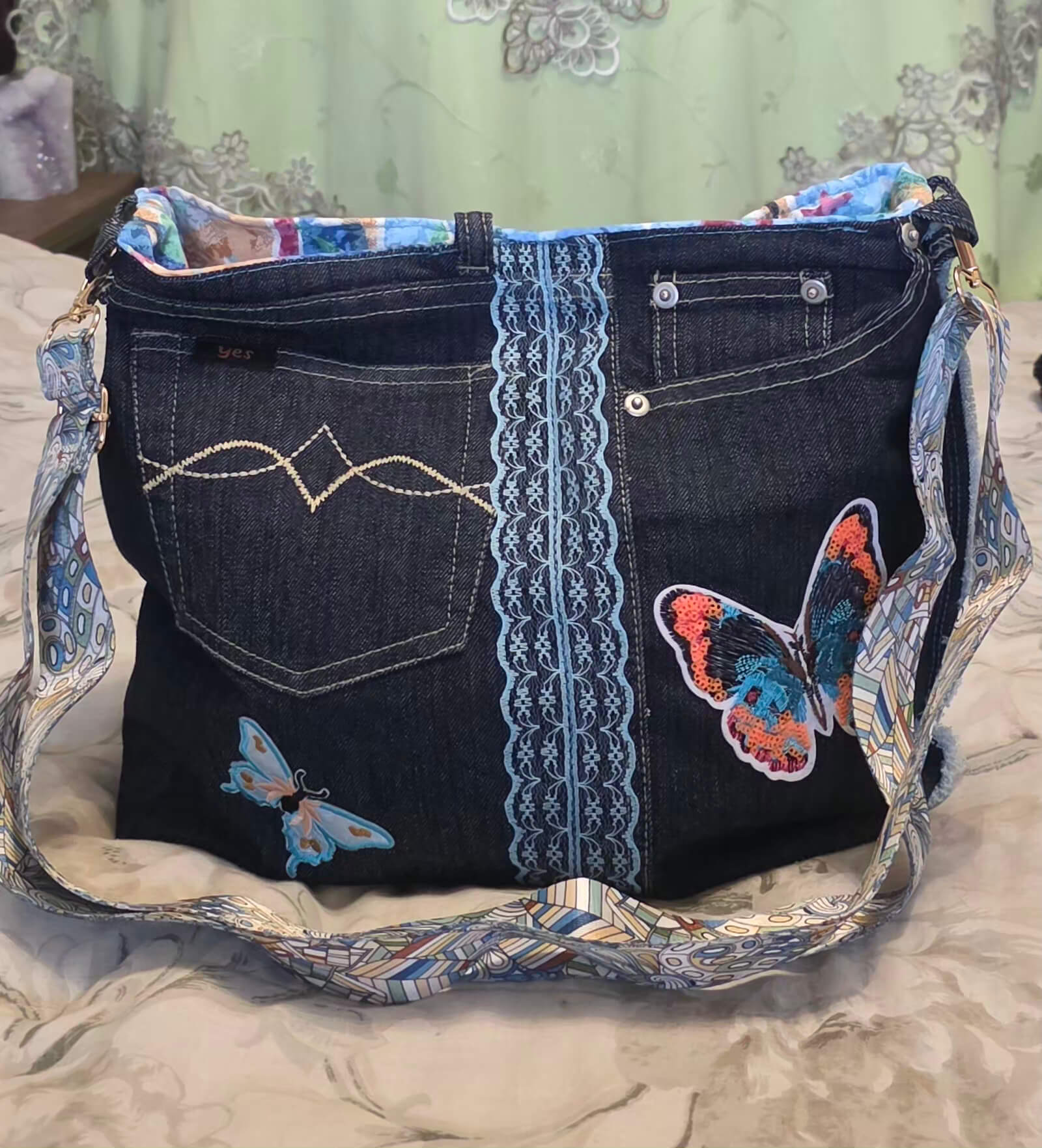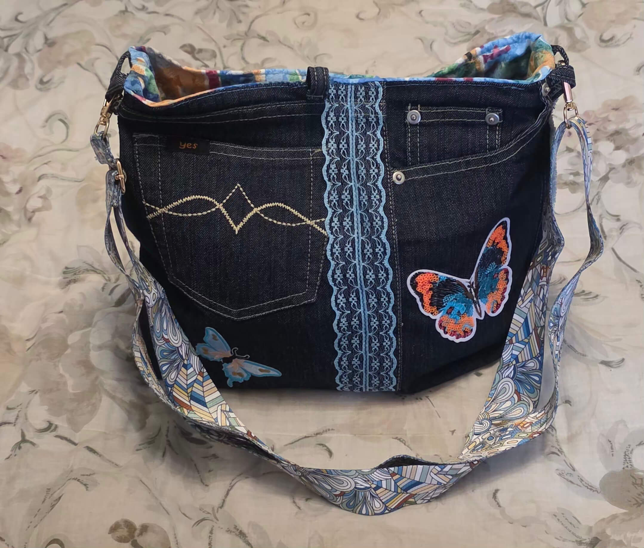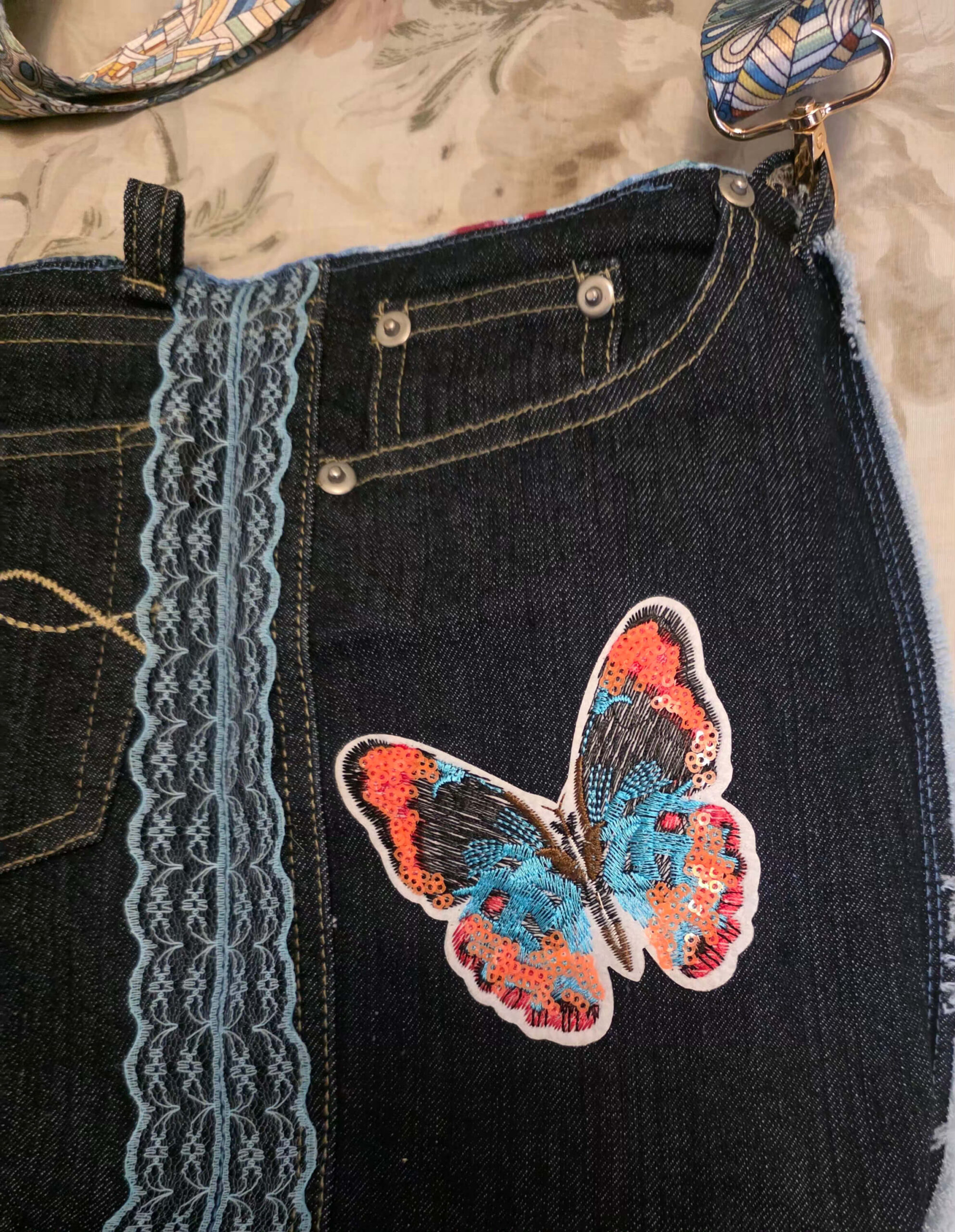 ees ja taga taskud, litritega tikand, eemaldatav reguleeritava pikkusega tugev mustriga õlarihm