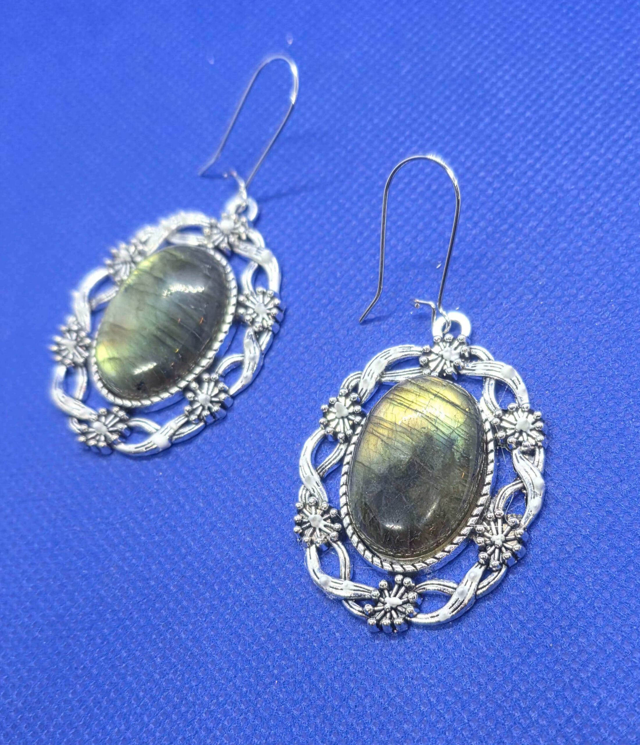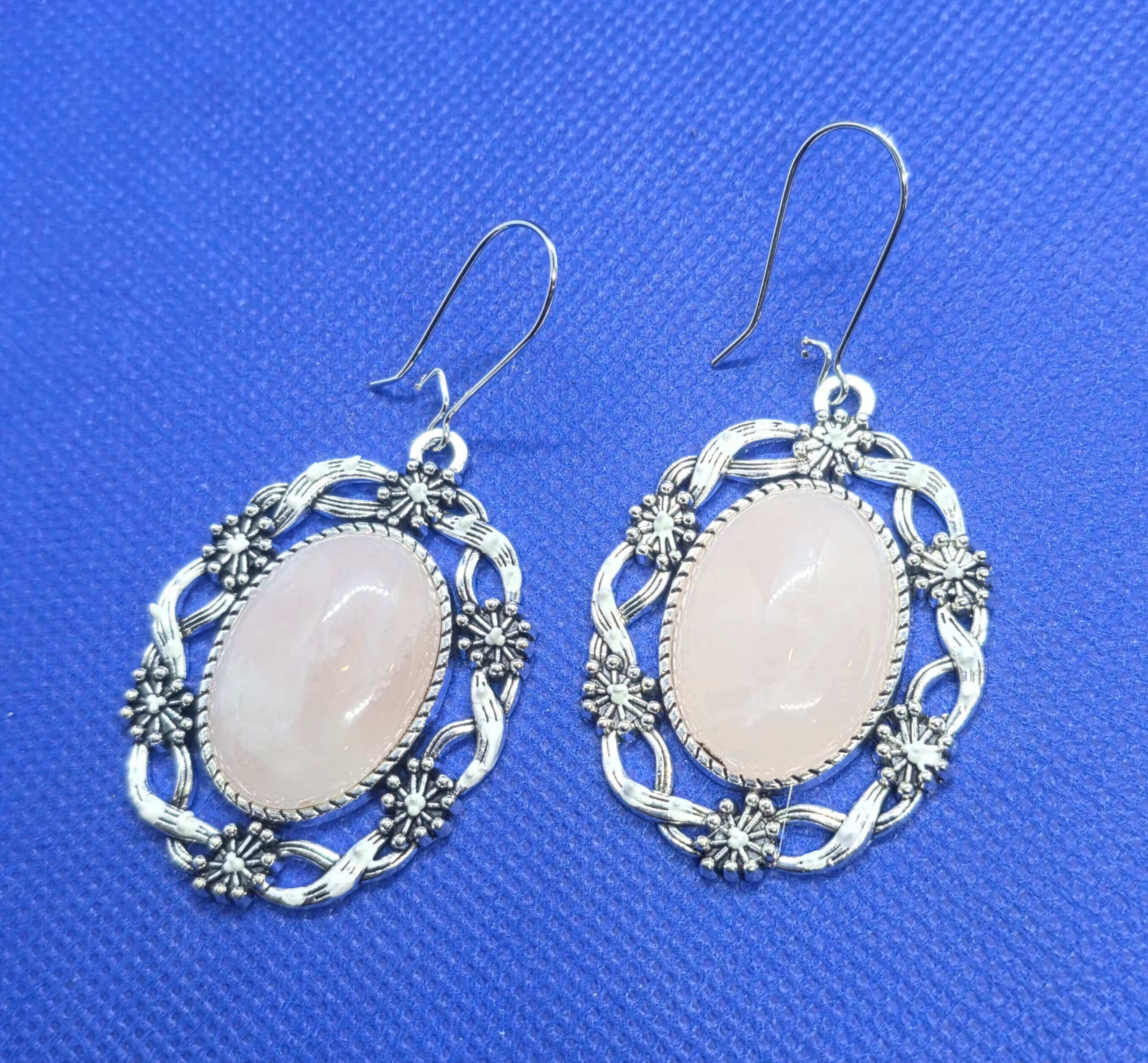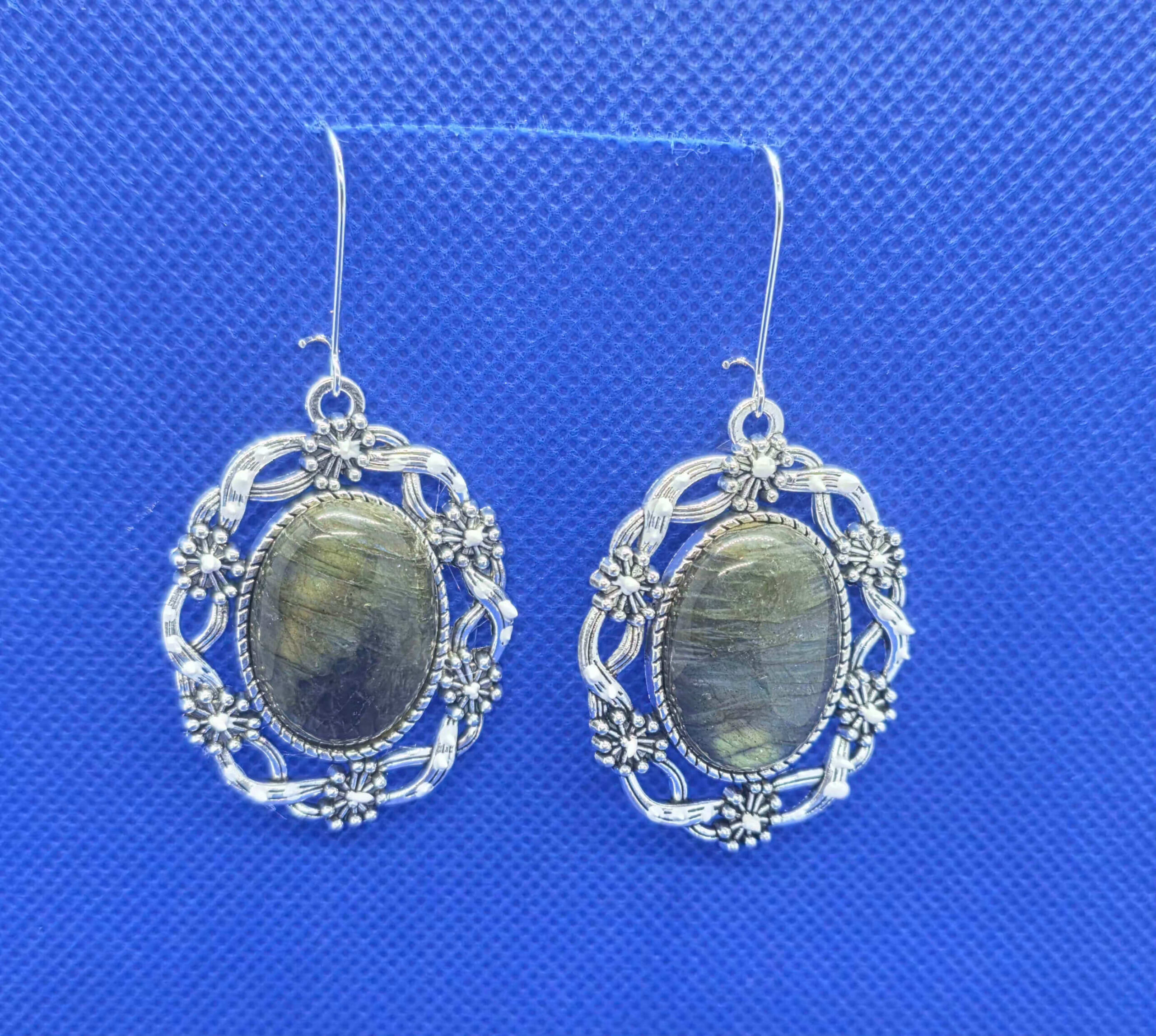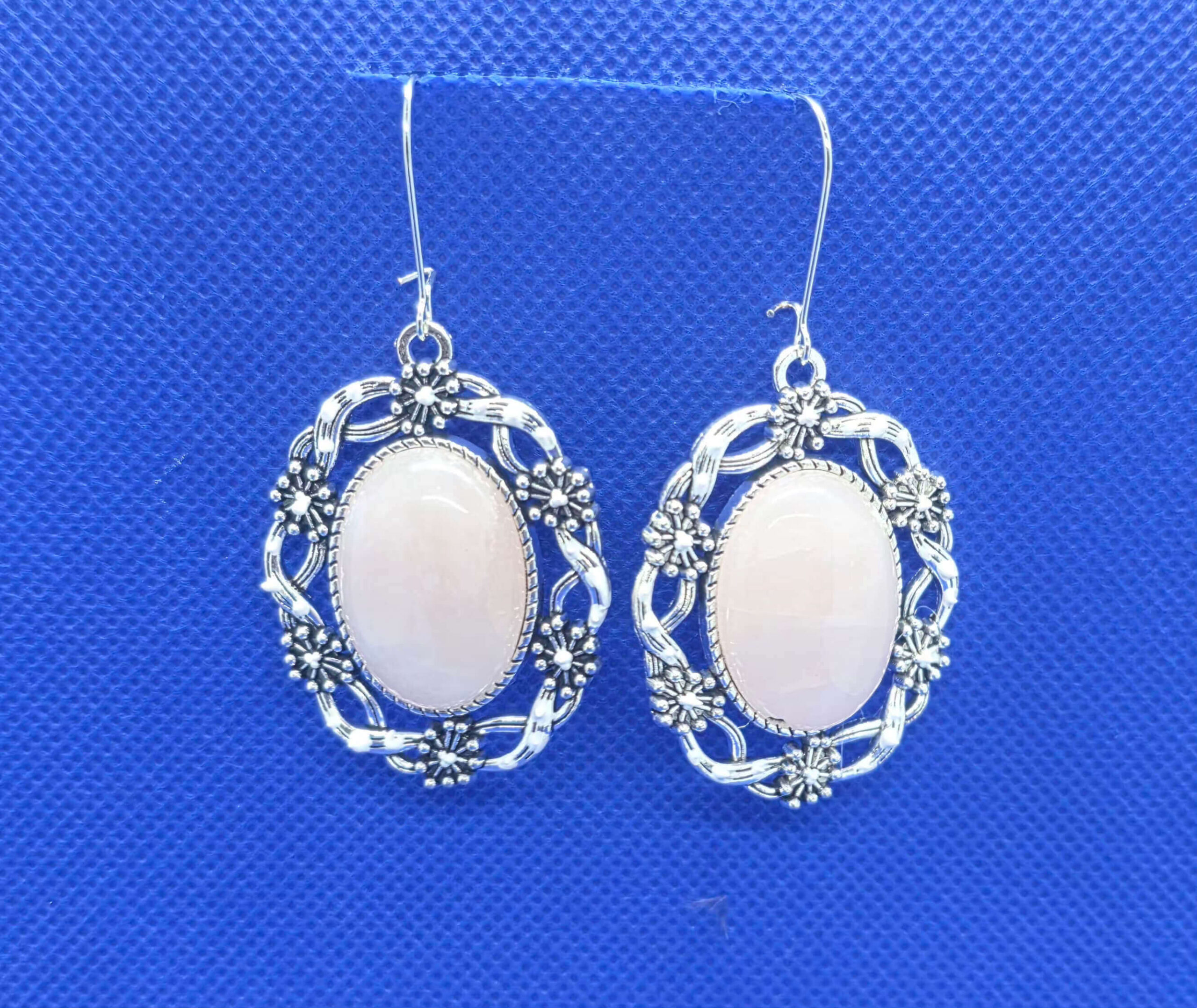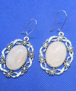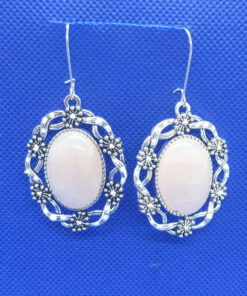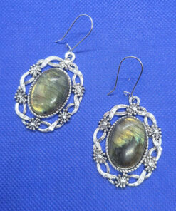 Lillepärjaga hõbedased naturaalse kiviga kõrvarõngad