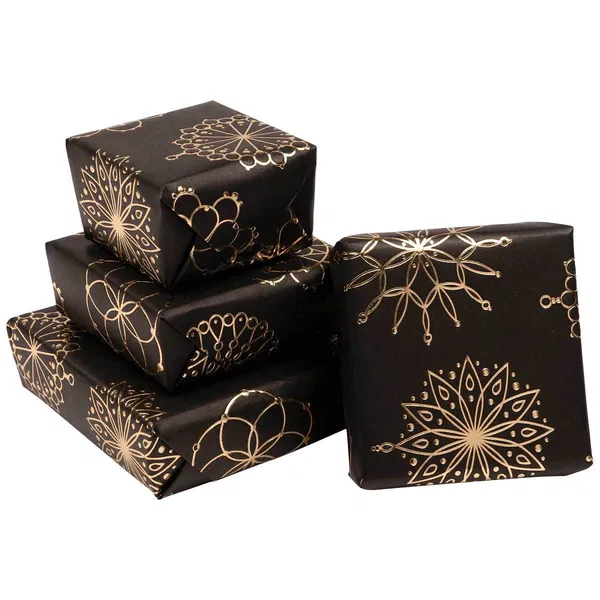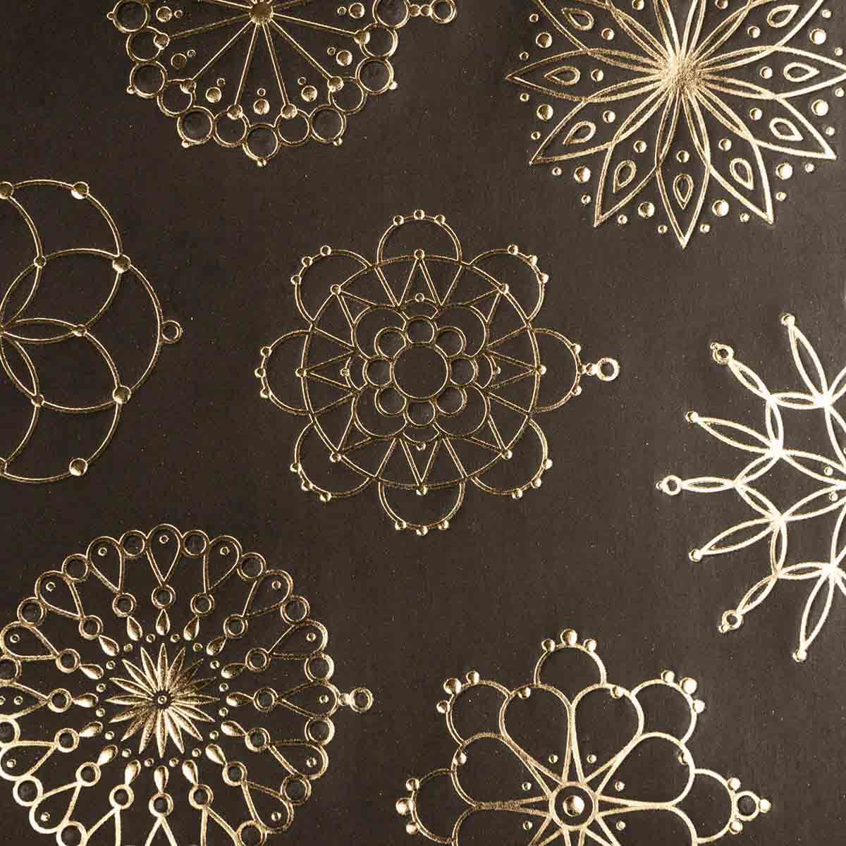 See must paber kuldsete pressitud ornamentidega annab igale pakile luksust ja müstikat. Lisa viimistluseks kuldne pael. Kasuta ka muuks käsitööks.