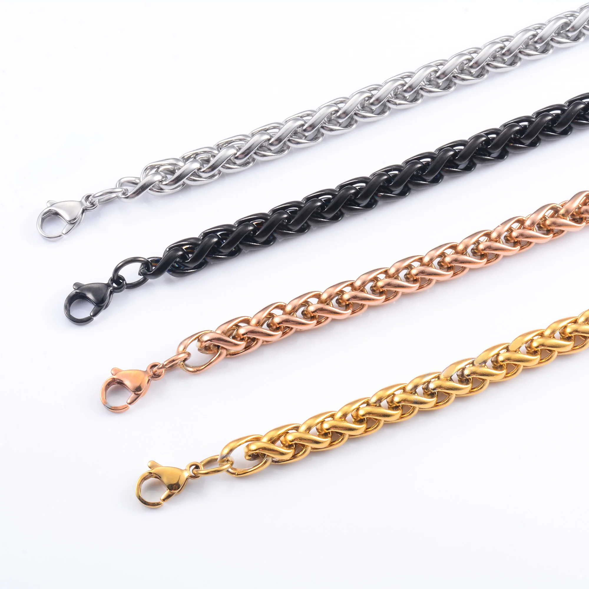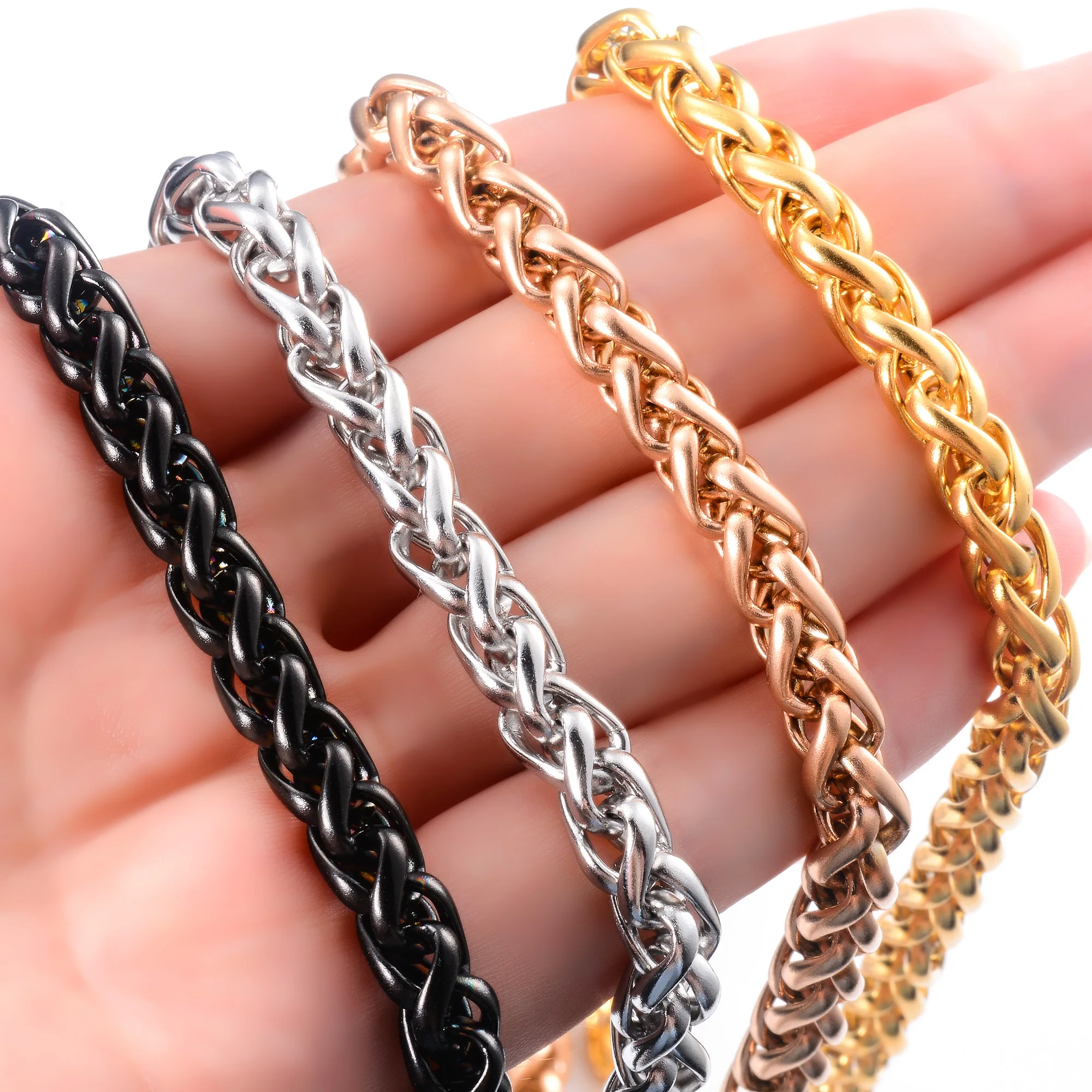 Hõbe/kuld pikliku lüliga roostevaba teras kaelakett 3mm x 56cm