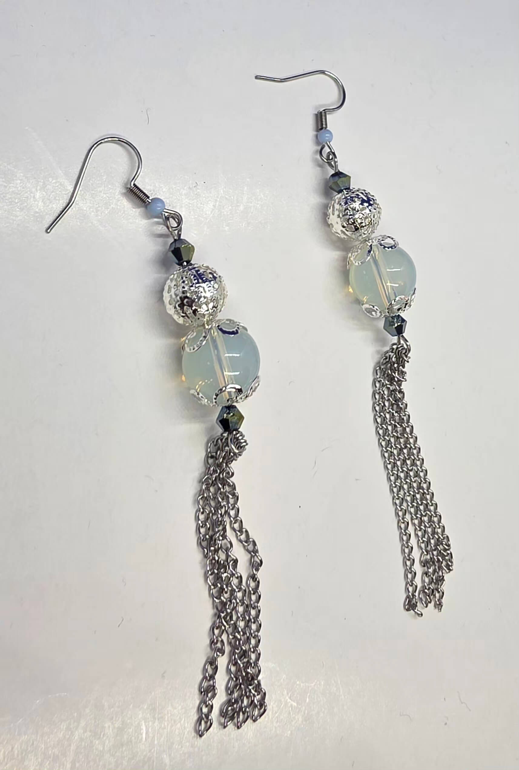 Opaliidiga kettidega rippuvad kõrvarõngad