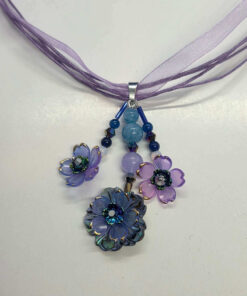 Paua merekarp akvamariin/jaad pärlitega lille ripatsiga organza paelaga kaelakee