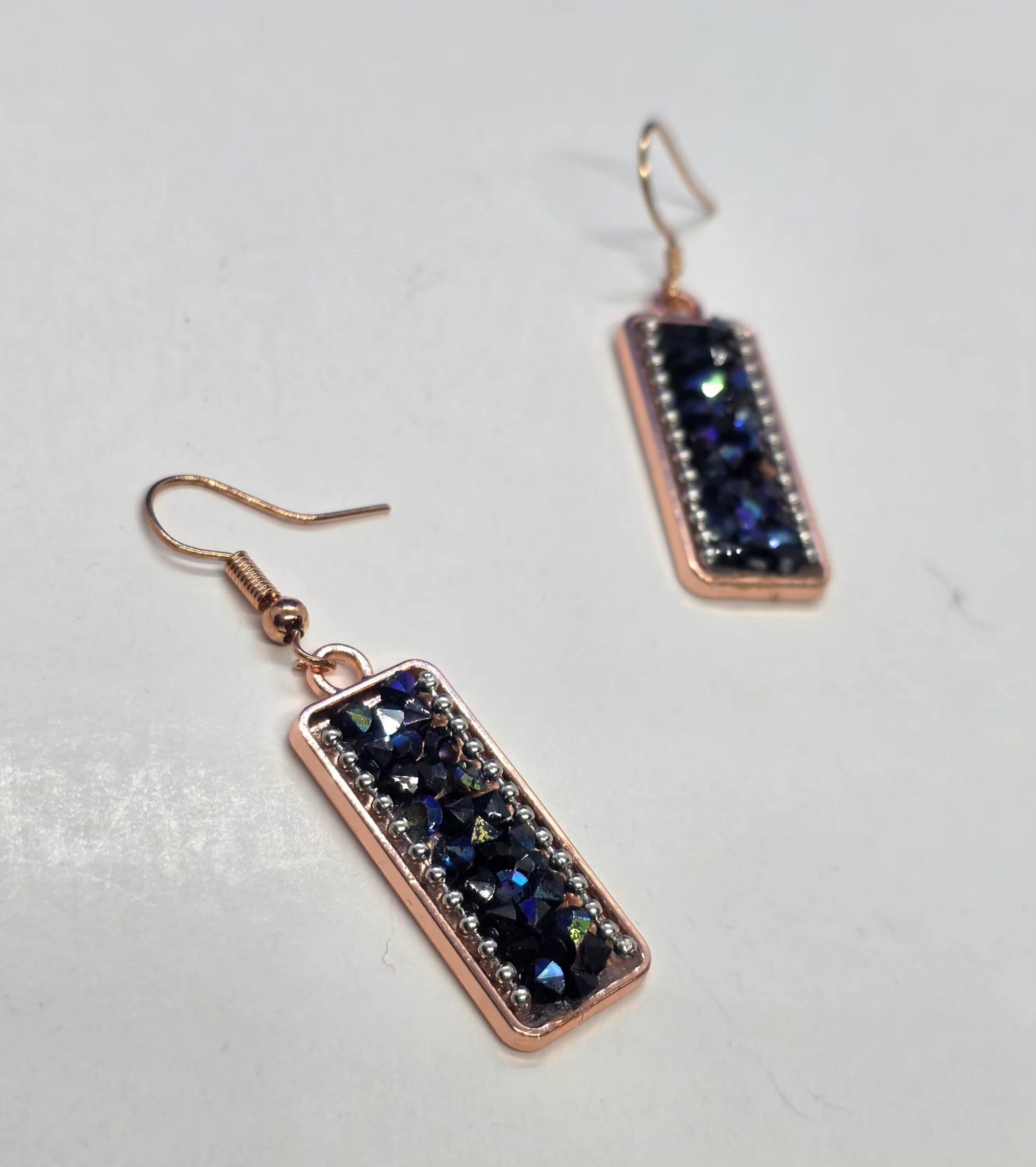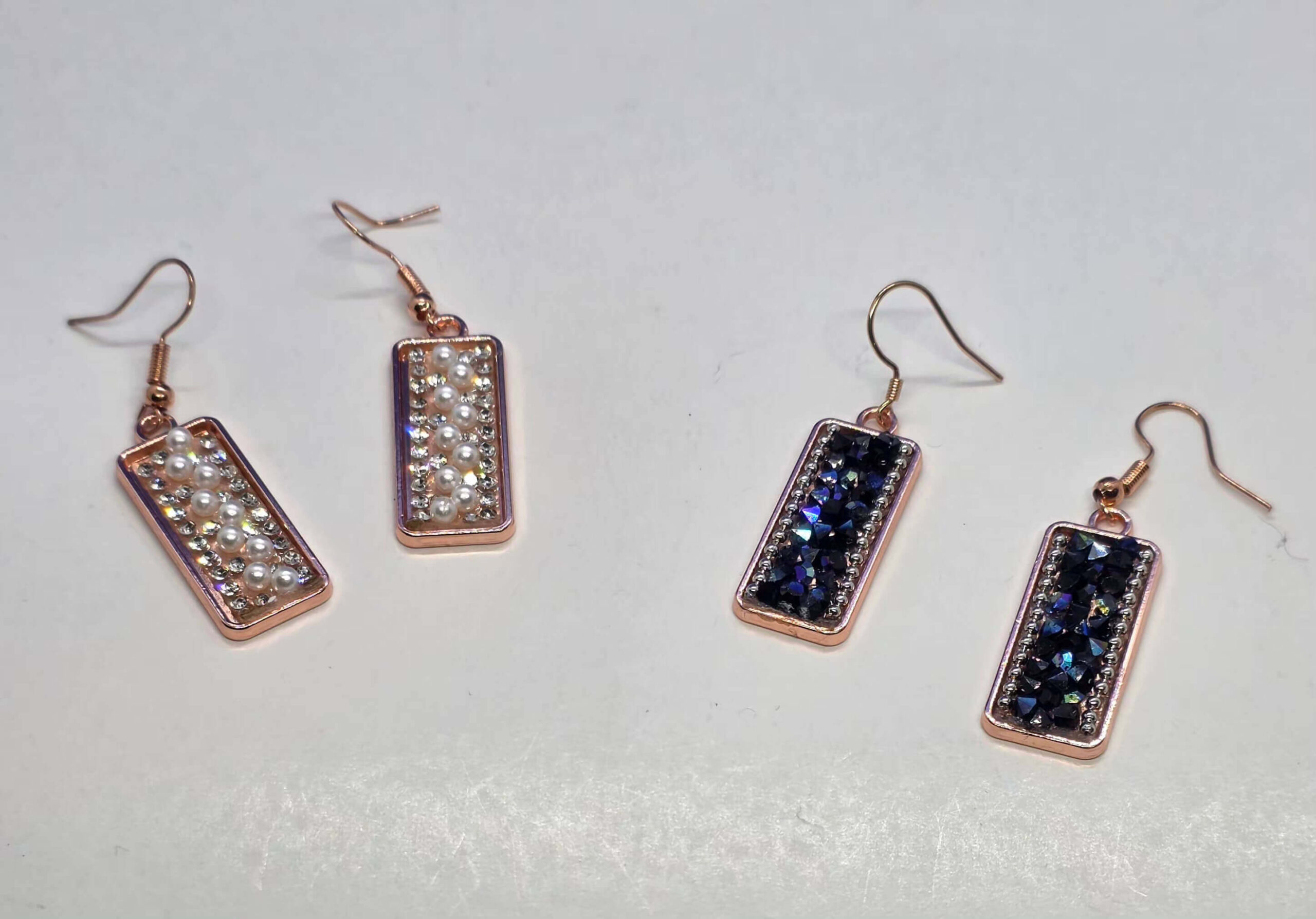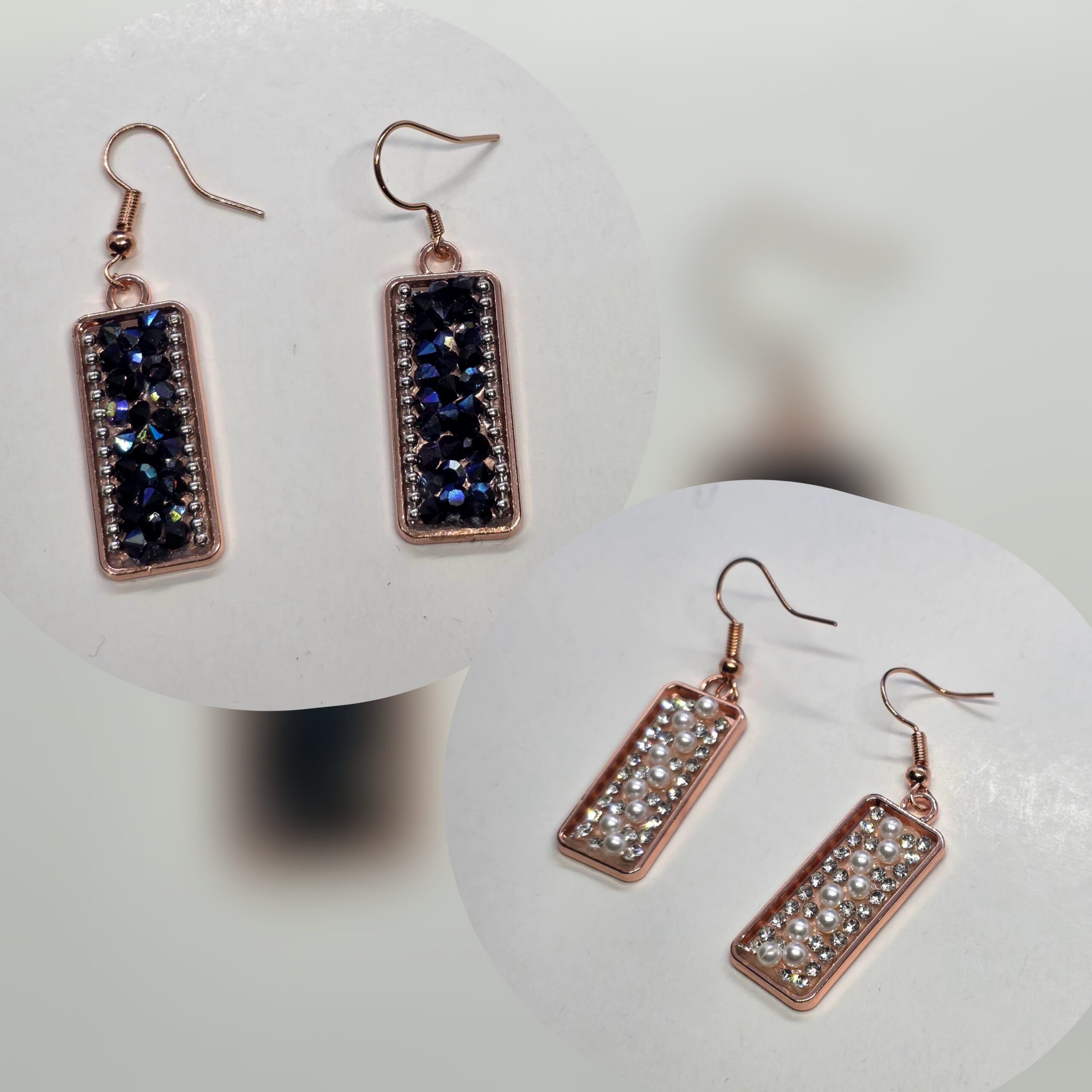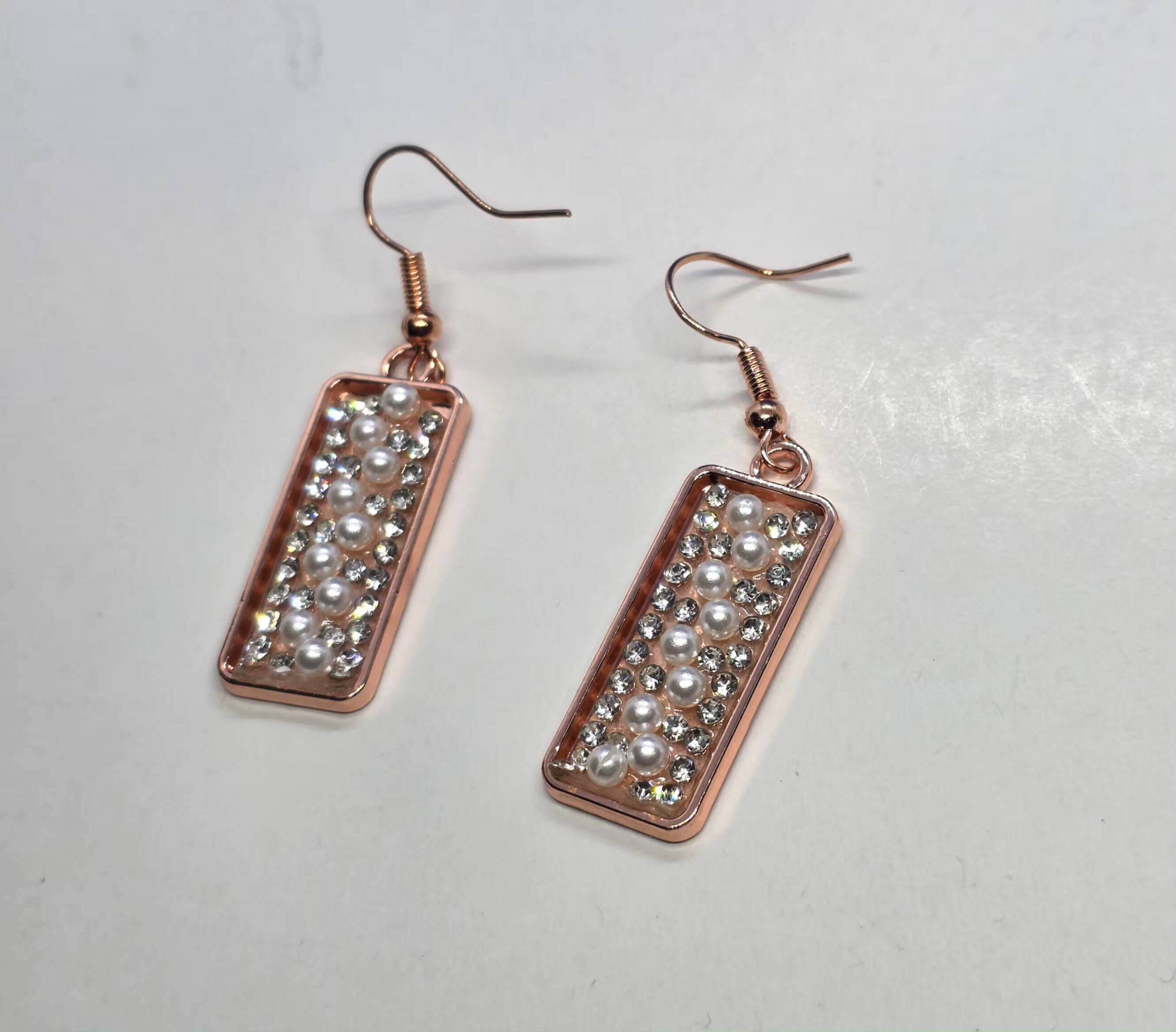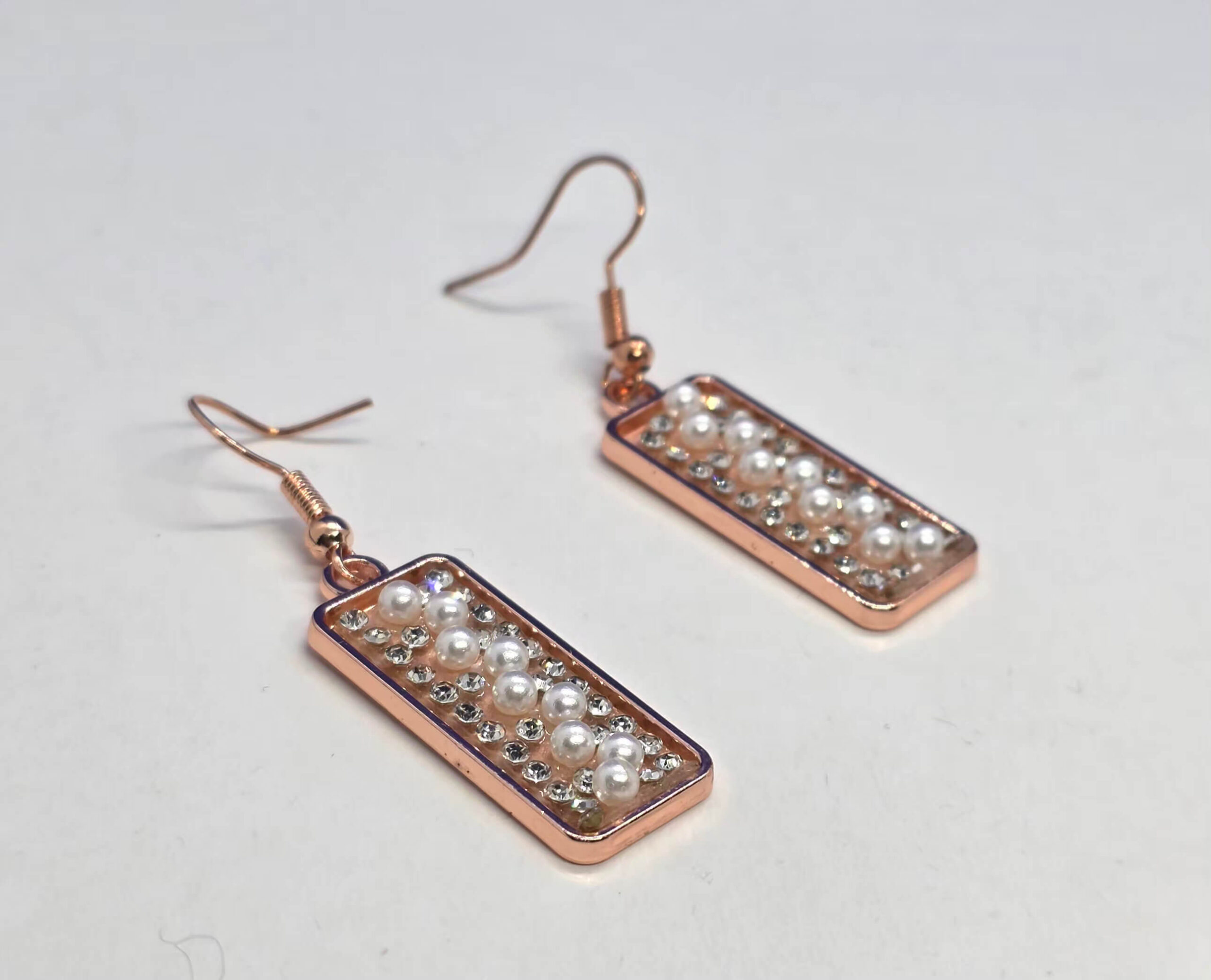 Ristküliku kujuga vase värvi rippuvad kõrvarõngad kristallidega