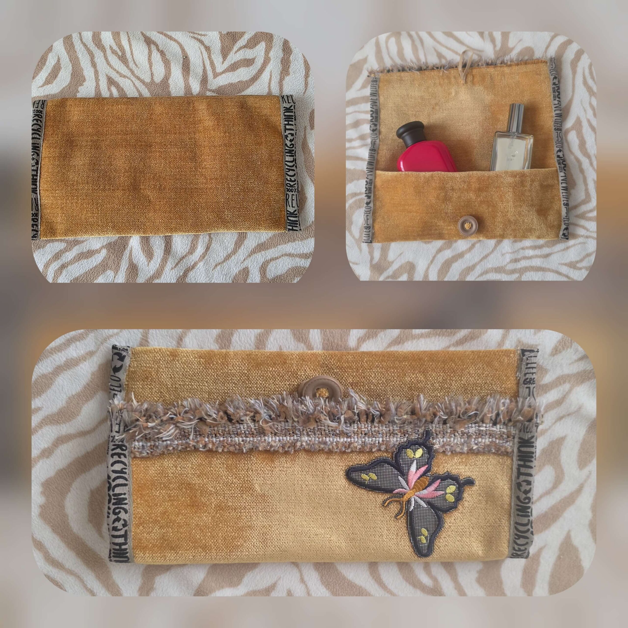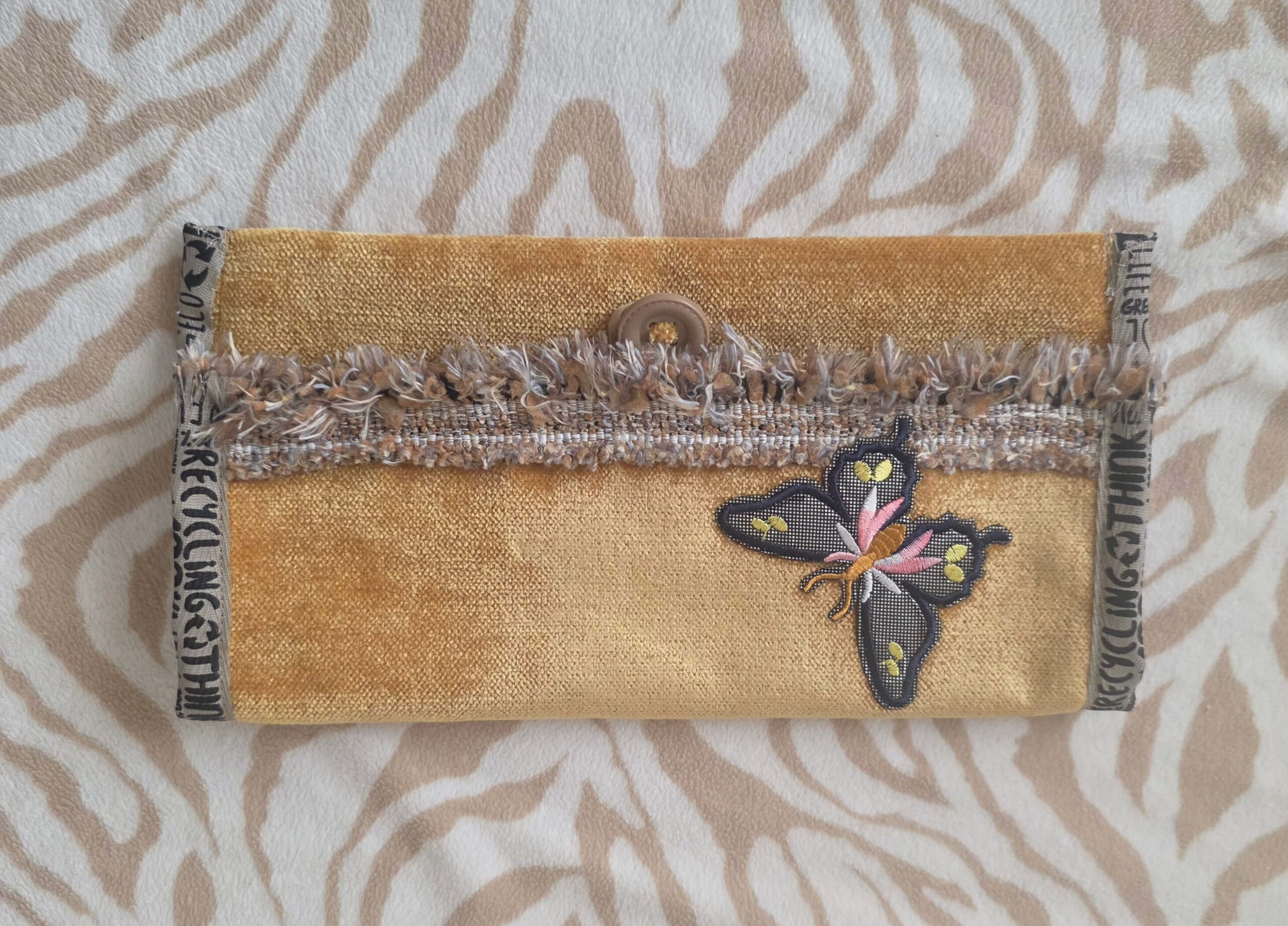 Sametist sinepikollane musta liblikaga kott