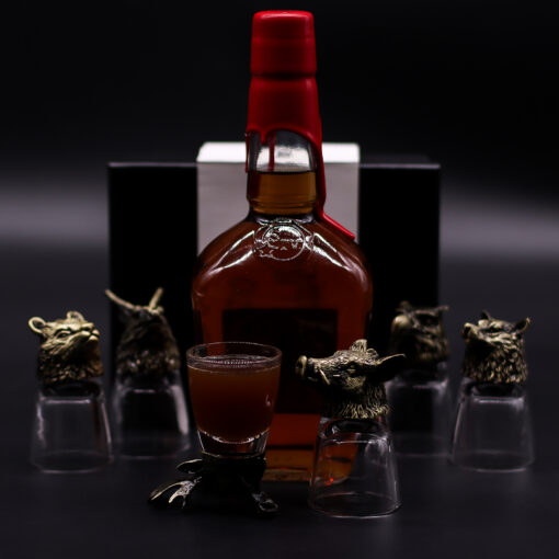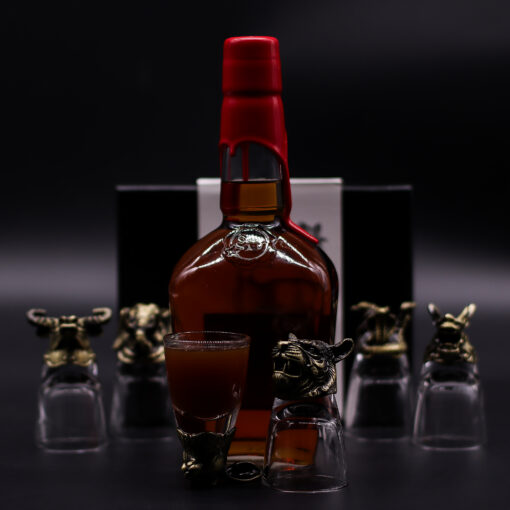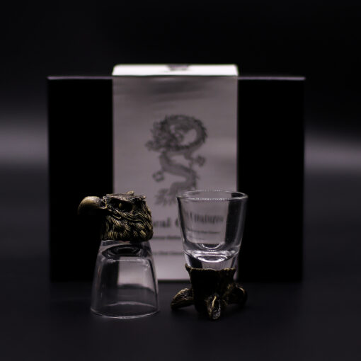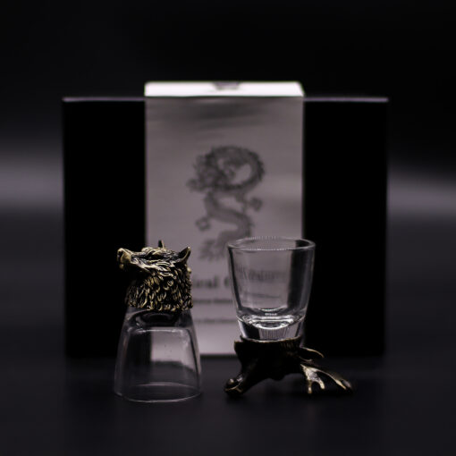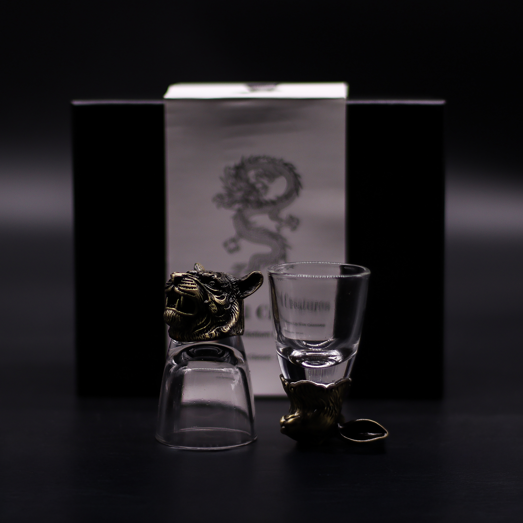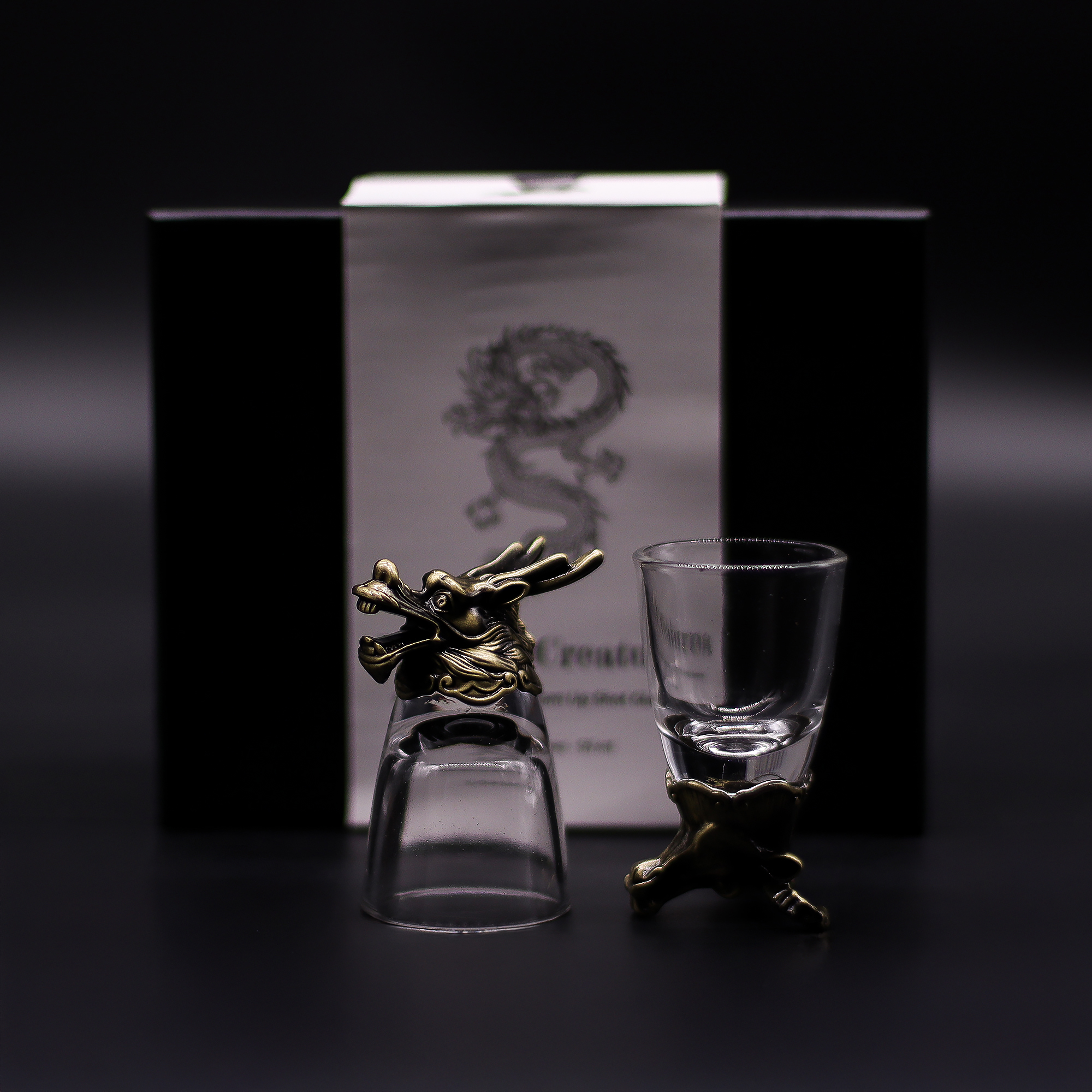 50 ml klaas on käsitsi valmistatud selgest klaasist messingist jalaga, detailselt viimistletud looma kujuliseks. Asetades kuju ülespoole loob see dekoratiivse kuju konnast kuni hirve, karu, draakoni või pullini, kus detailid, nagu kõrvad, sarved, tiivad jne. on viimistletud täiuslikult tasakaalu, kui kaas asetada lauale. Klaas sobib fantaasia armastajale. Suurepärane ka kollektsionääridele.