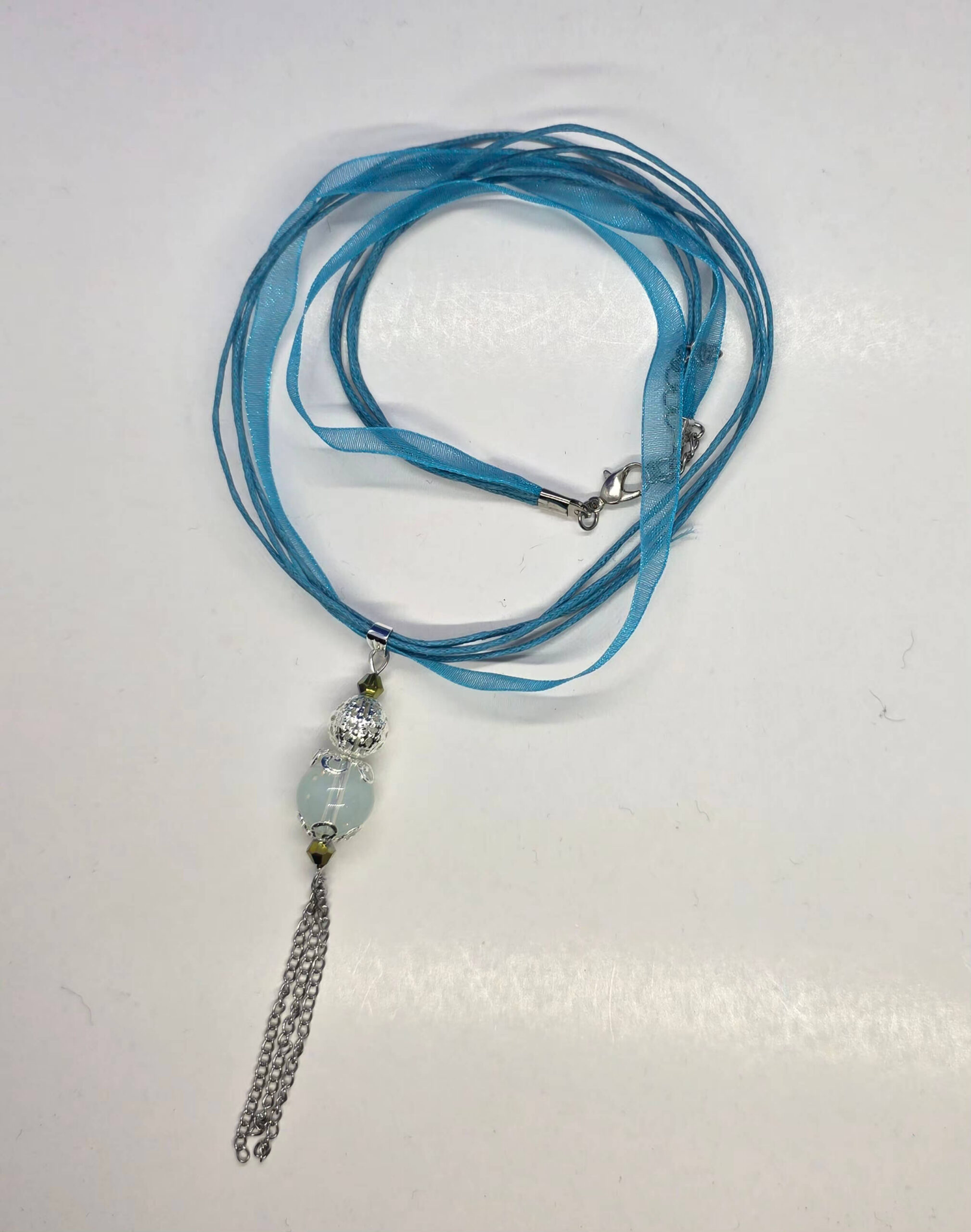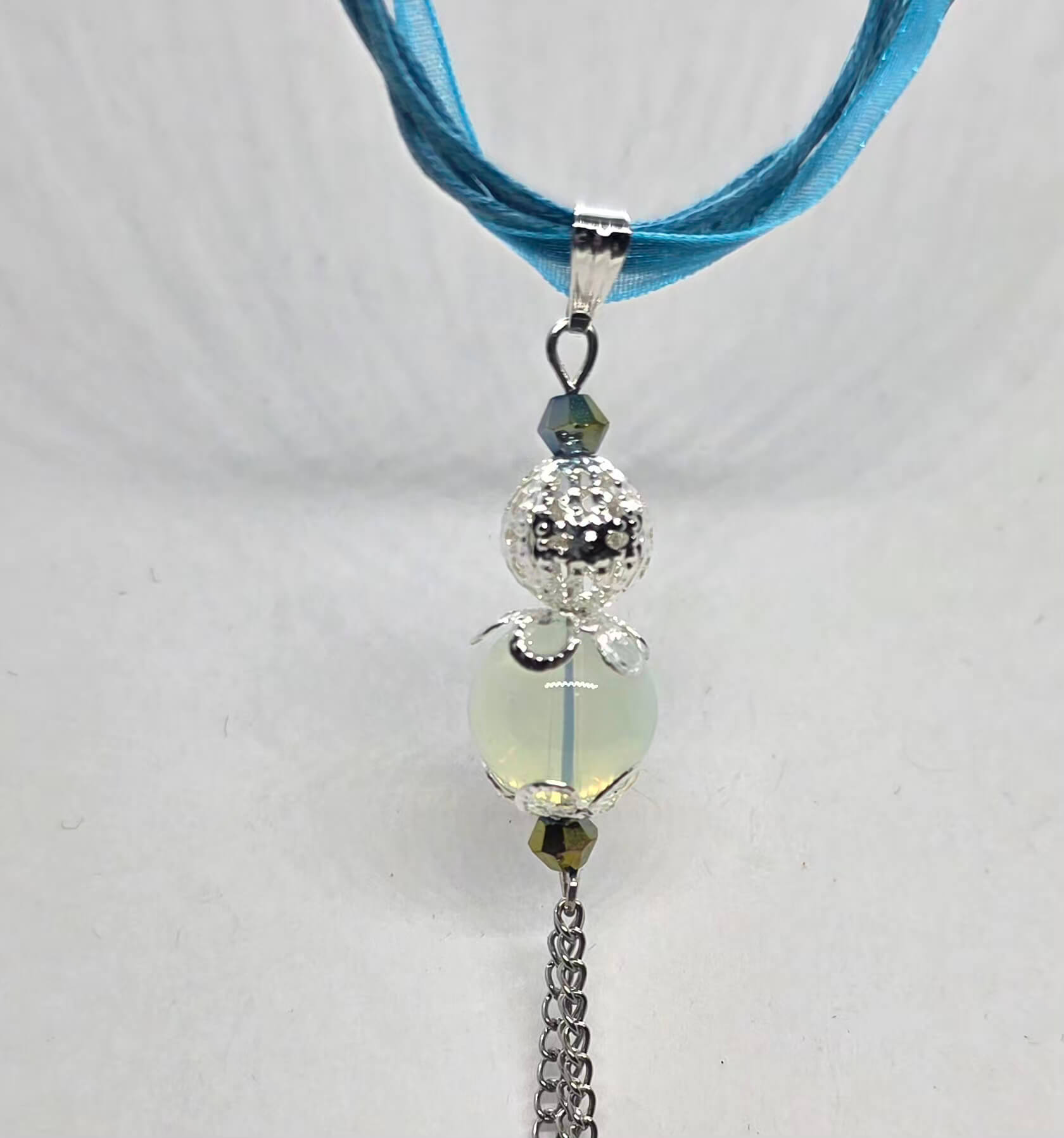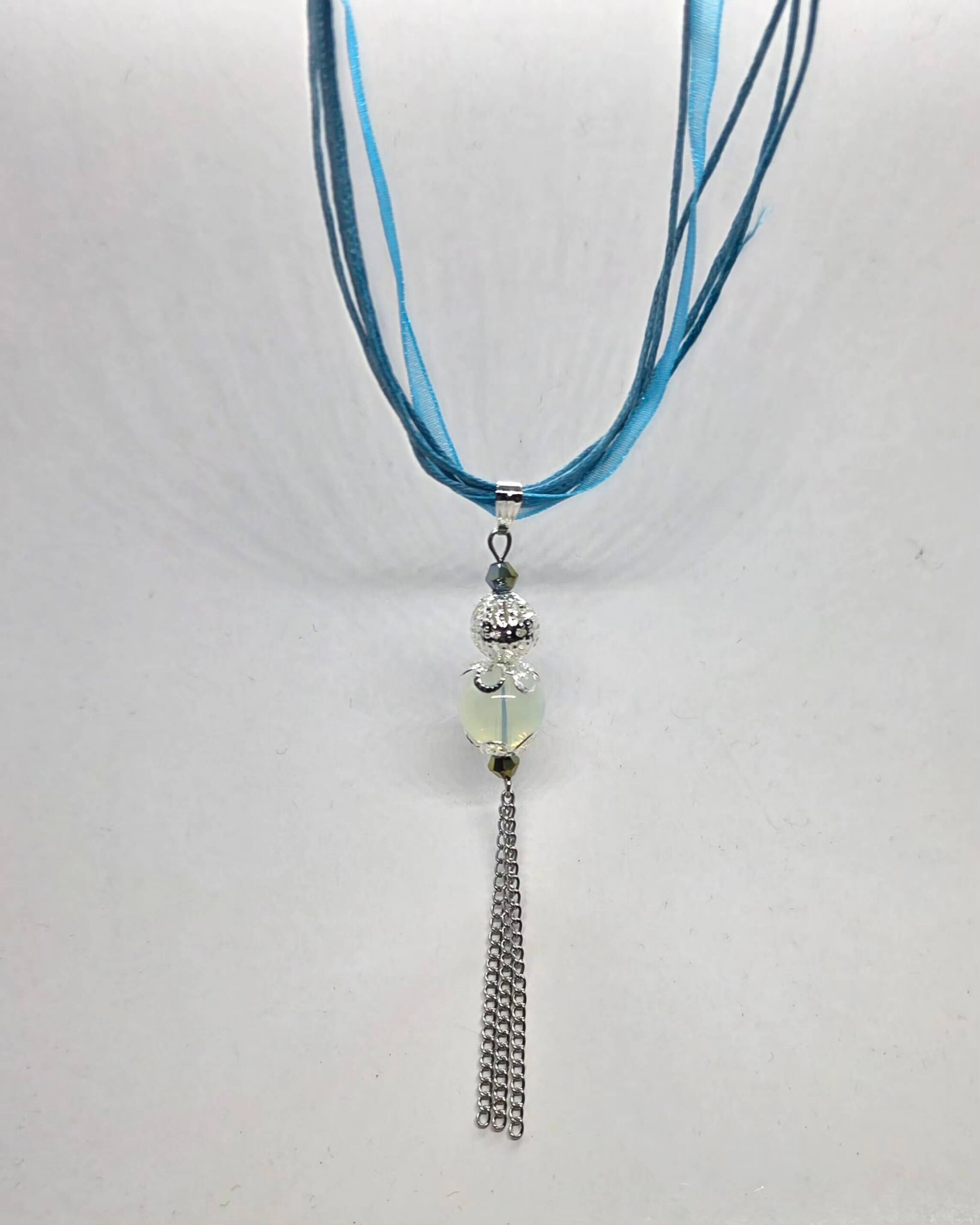 Sinise organza paelaga opaliit ripats kettidega kaelakee