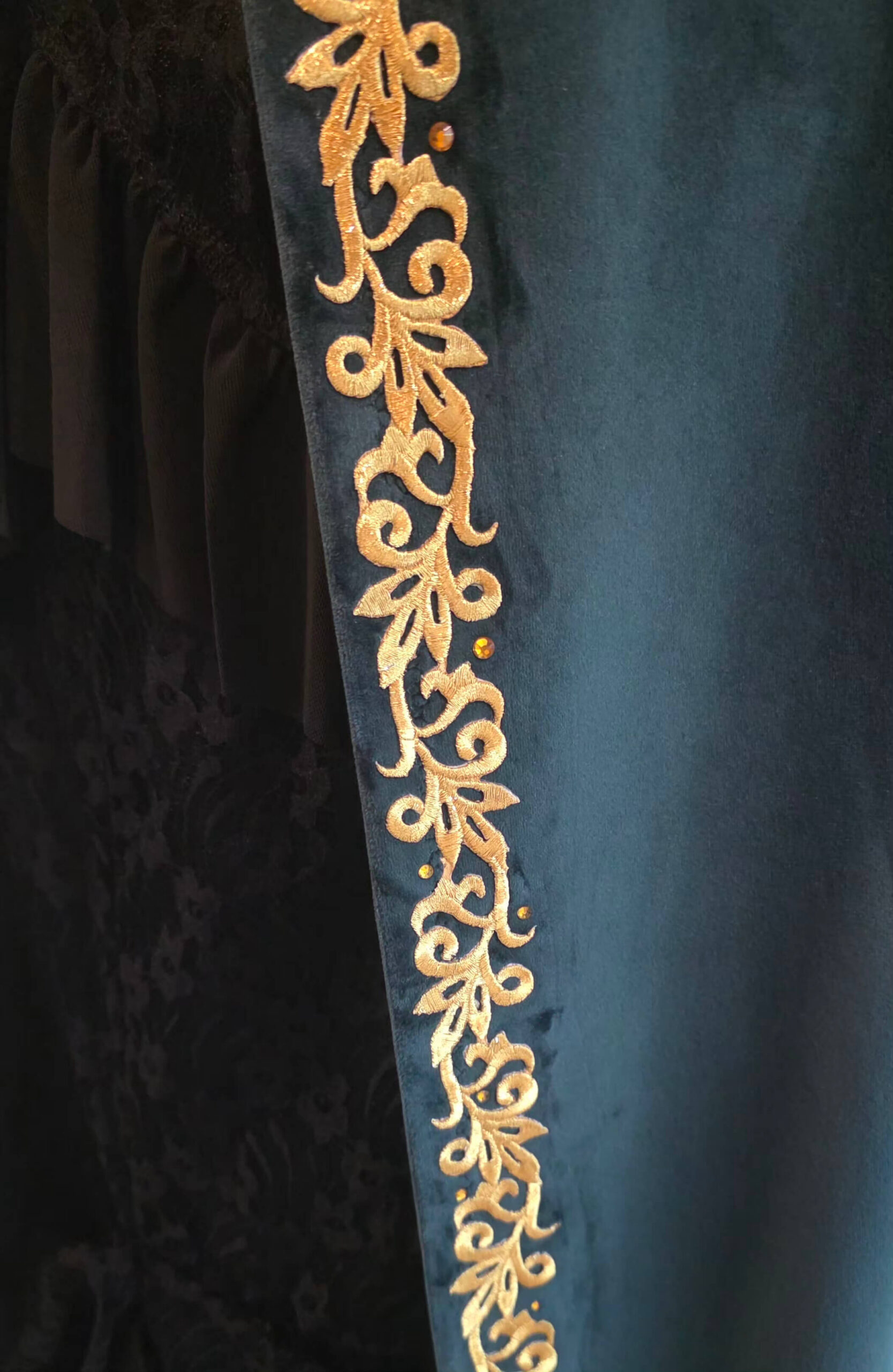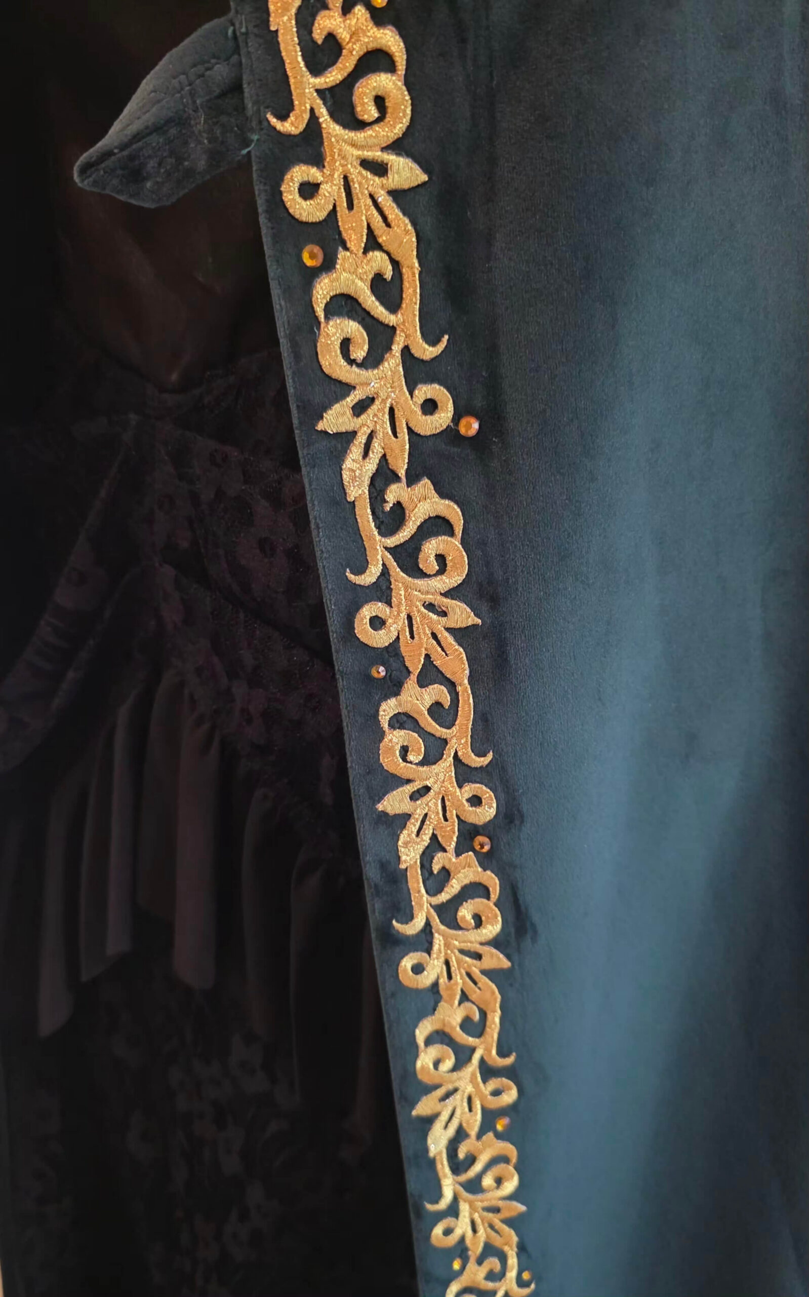 paks samet, kristallidega kuldne tikand